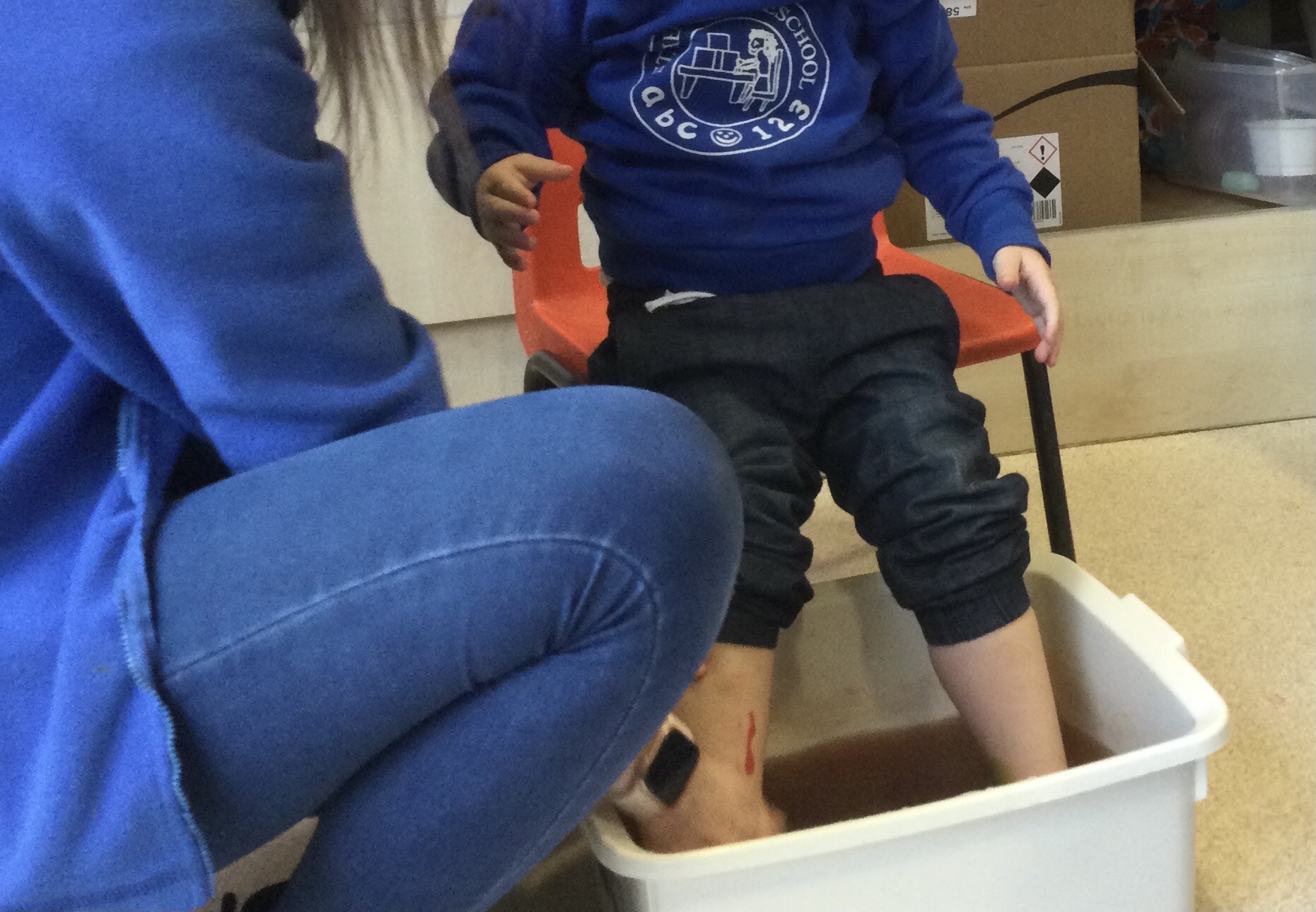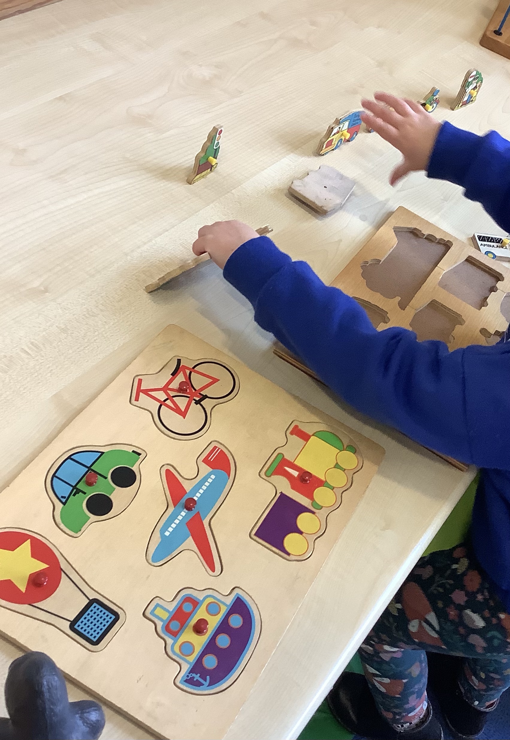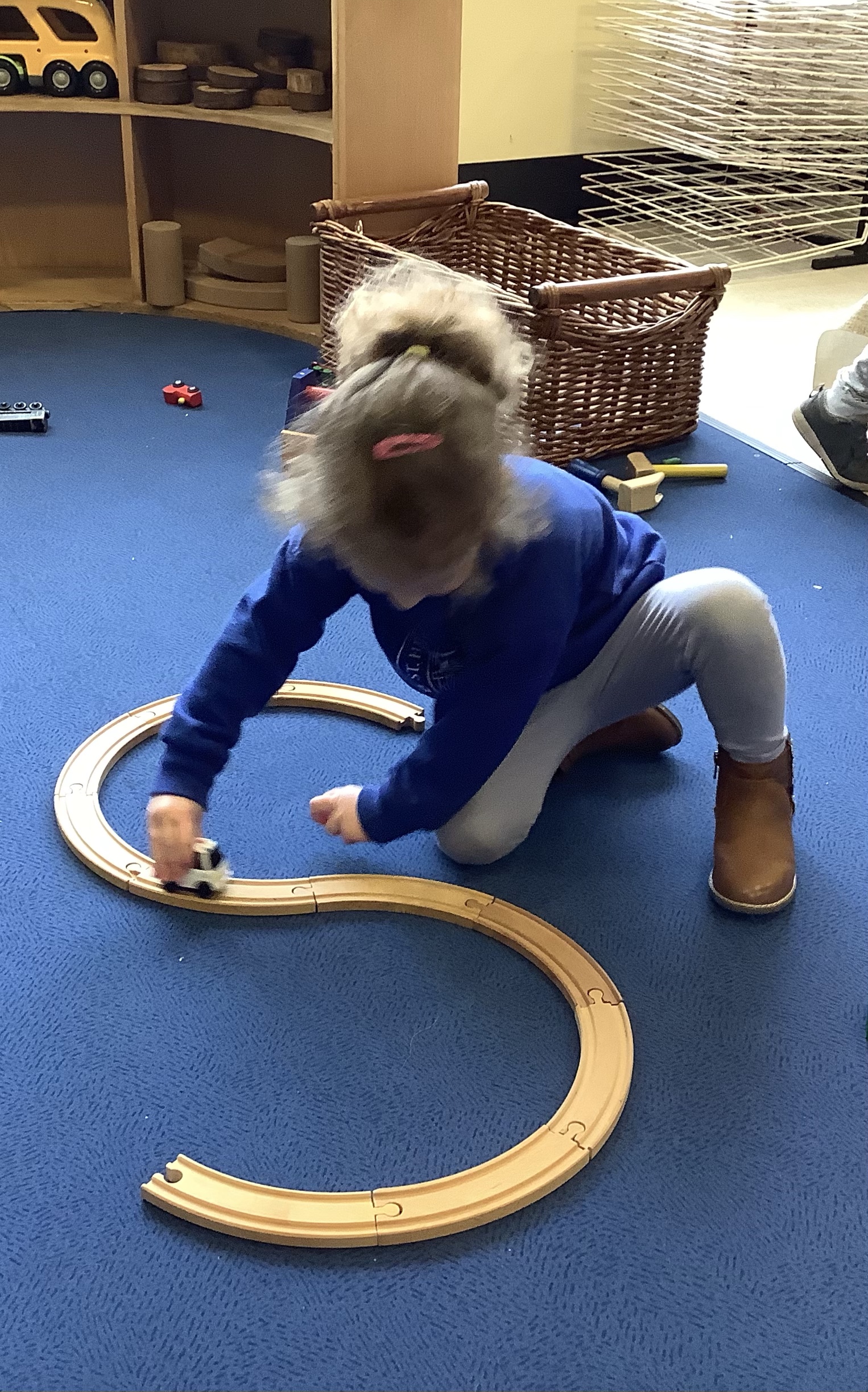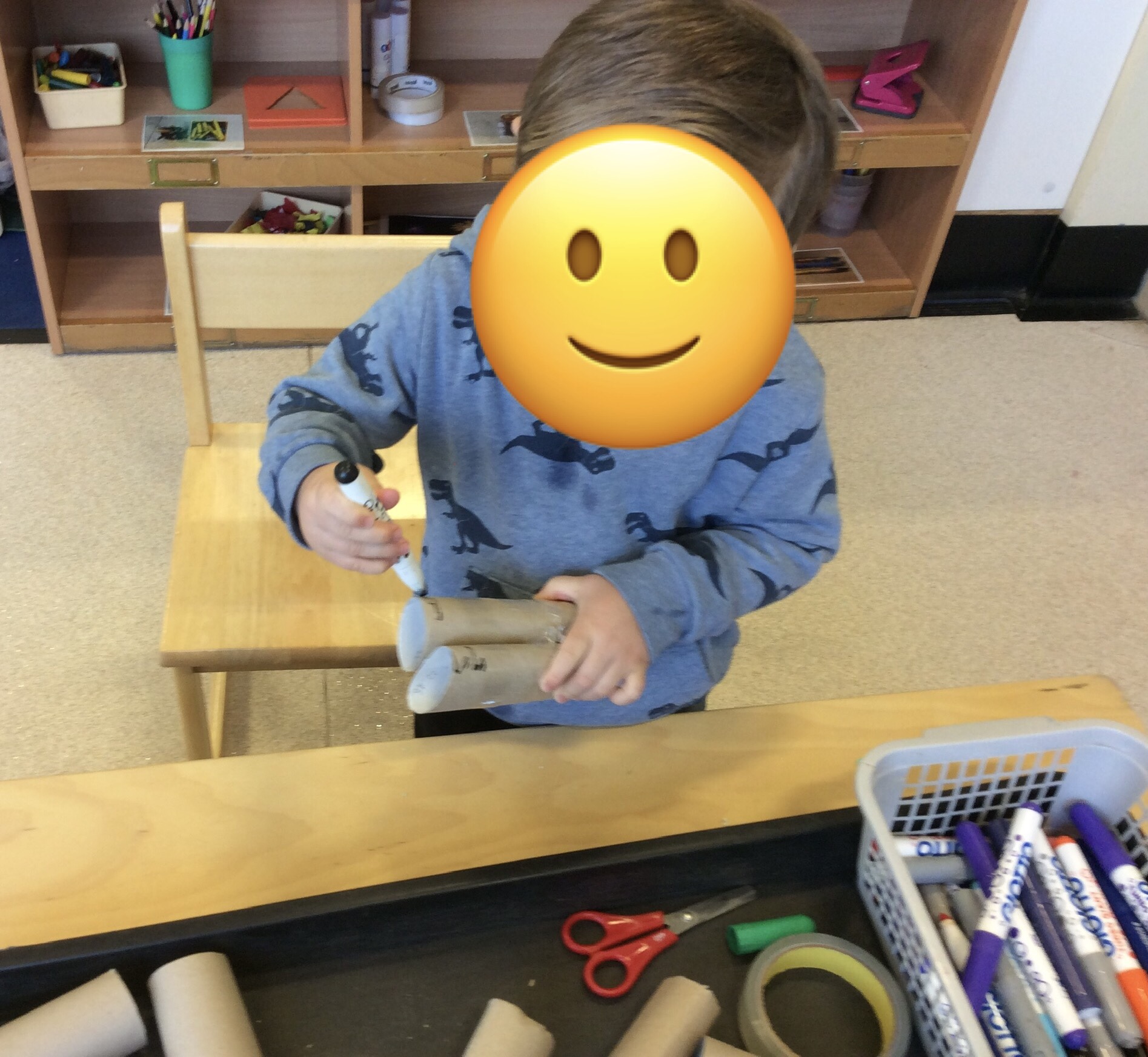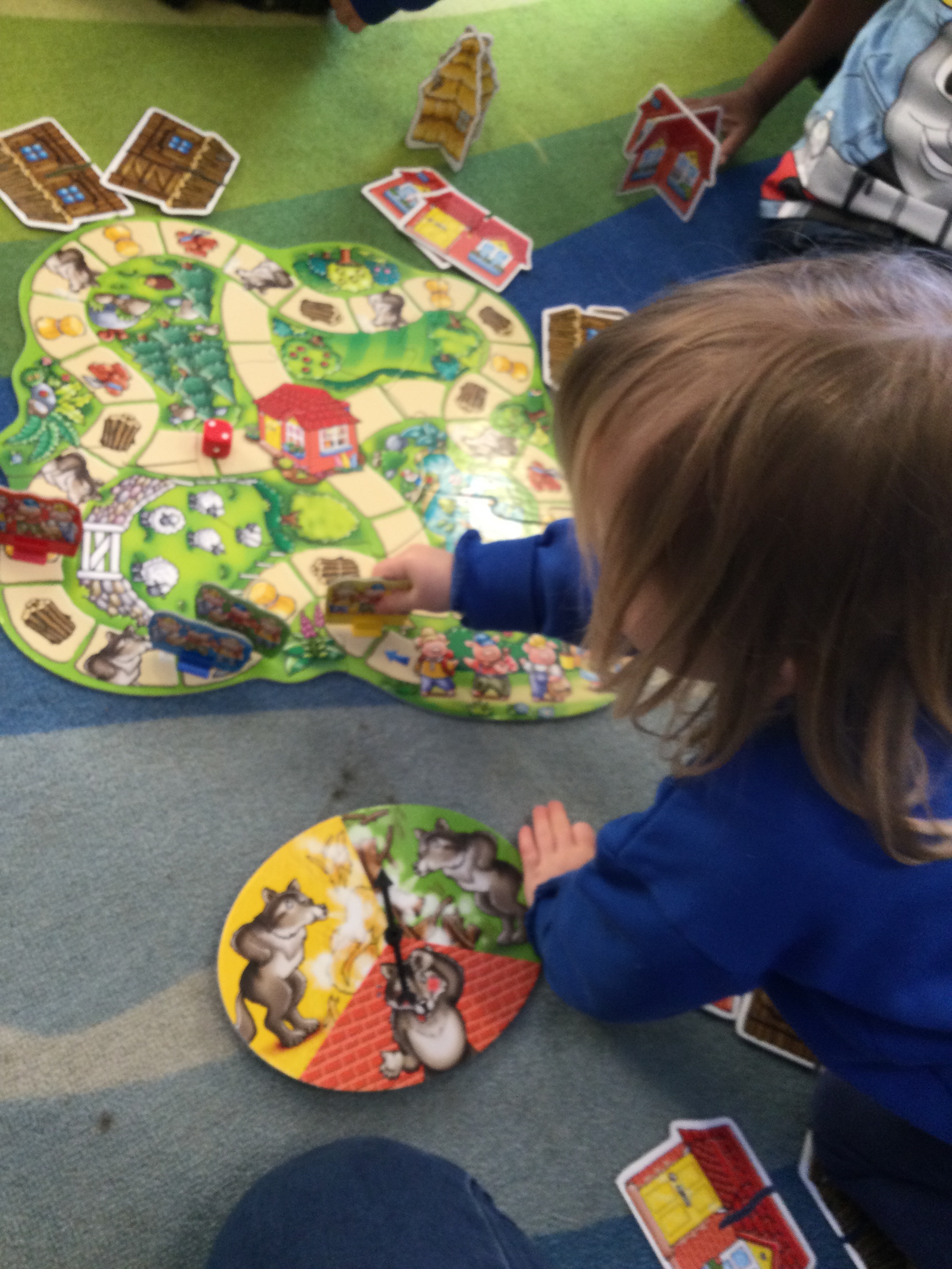 The children love to sing “we’re going on a bear hunt” and in orange room the children used random items that they pretended were binoculars to look out of the windows for bears. Following on from this, we made our own binoculars. We extended this activity even further by going into the garden using the bug hunt resources to search for living creatures (luckily no bears were found). All the while promoting care and concern for living things and our environment.