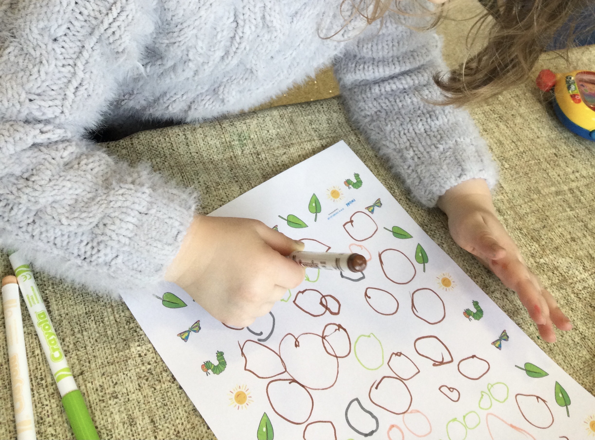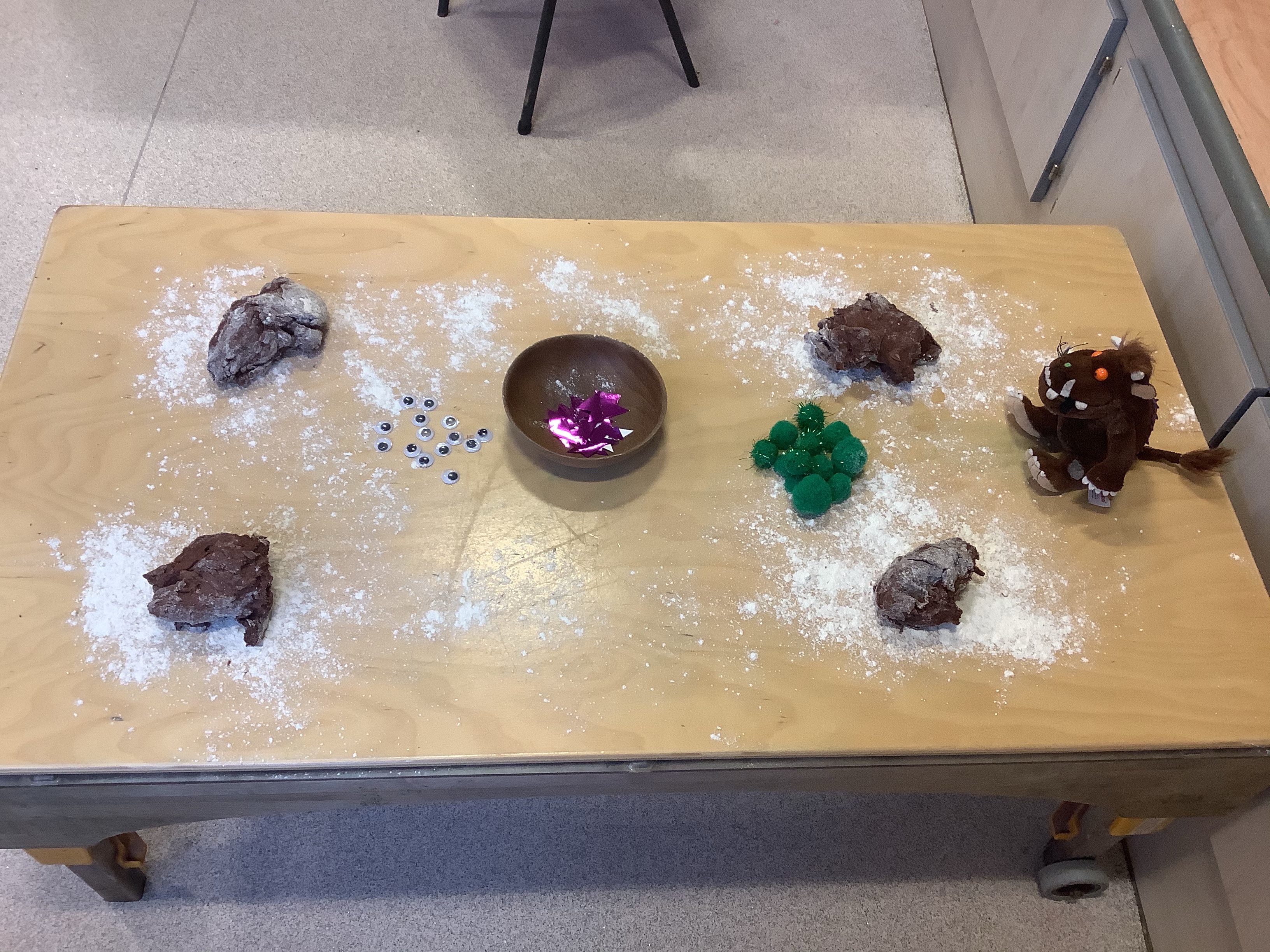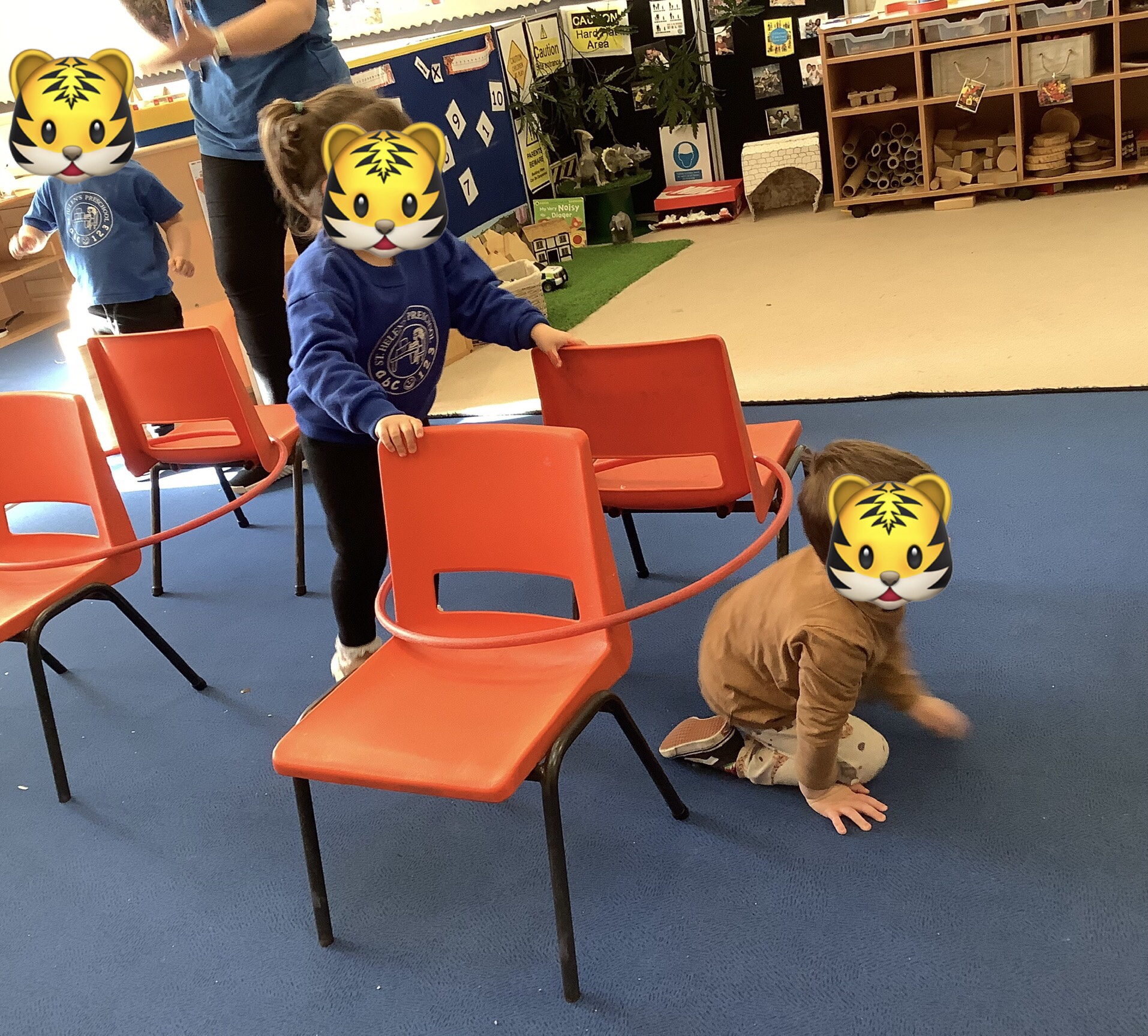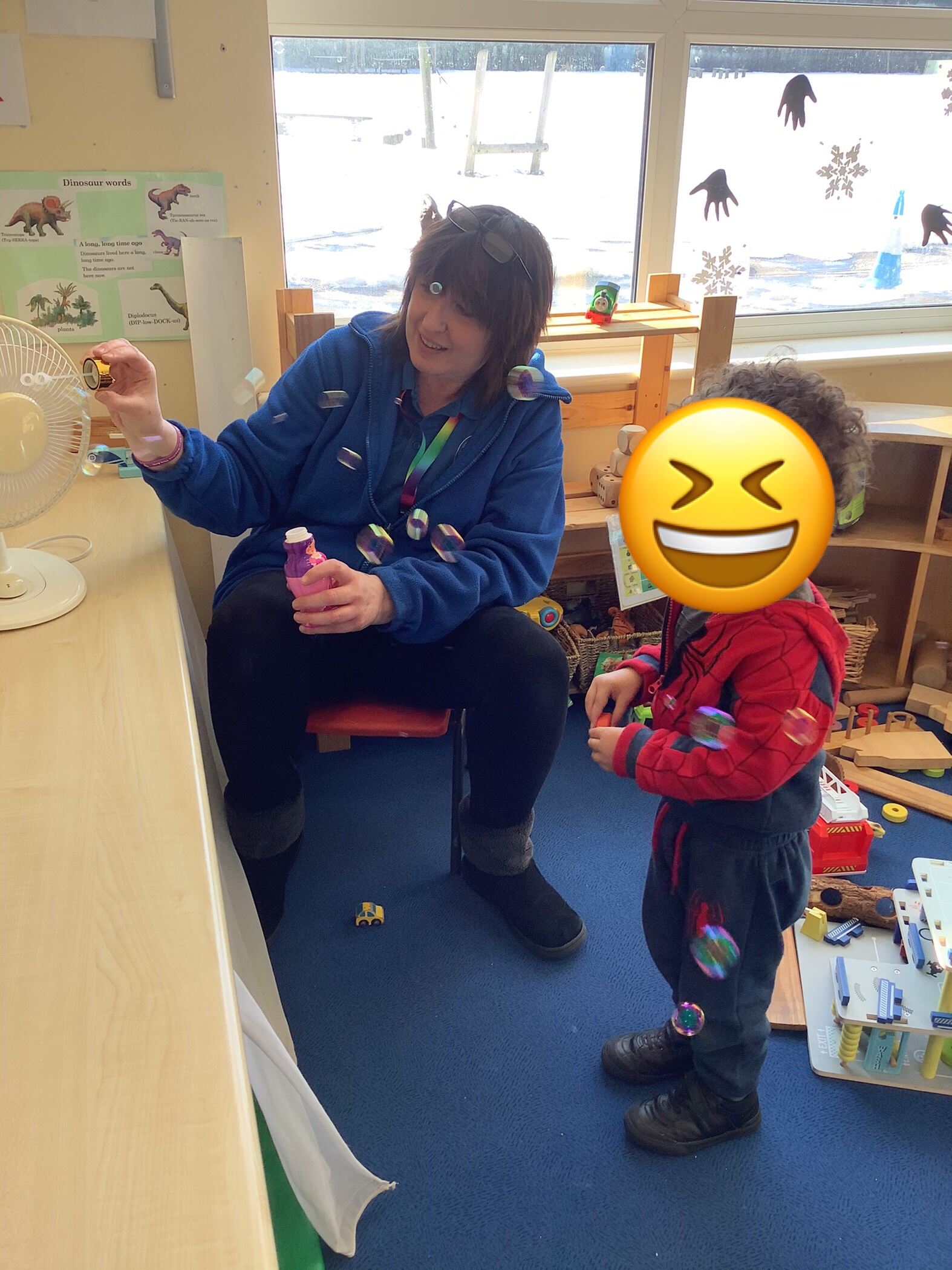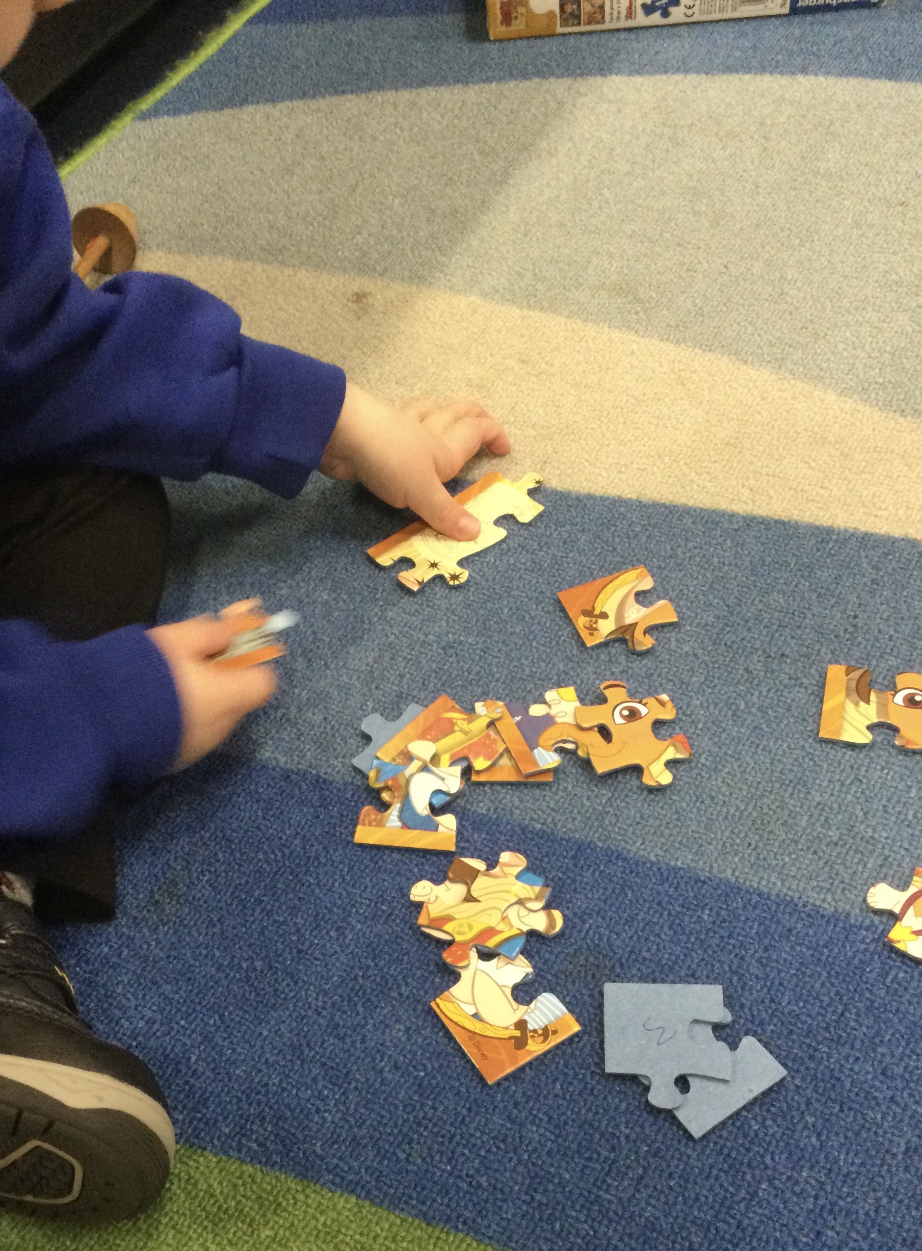The children love to sing “we’re going on a bear hunt” and in orange room the children used random items that they pretended were binoculars to look out of the windows for bears. Following on from this, we made our own binoculars. We extended this activity even further by going into the garden using the bug hunt resources to search for living creatures (luckily no bears were found). All the while promoting care and concern for living things and our environment.