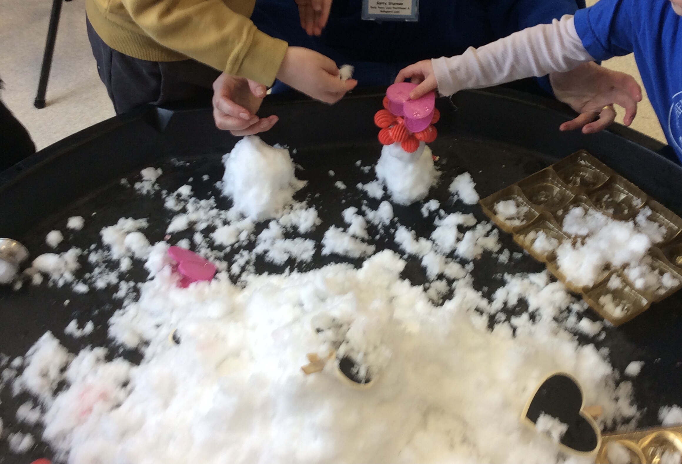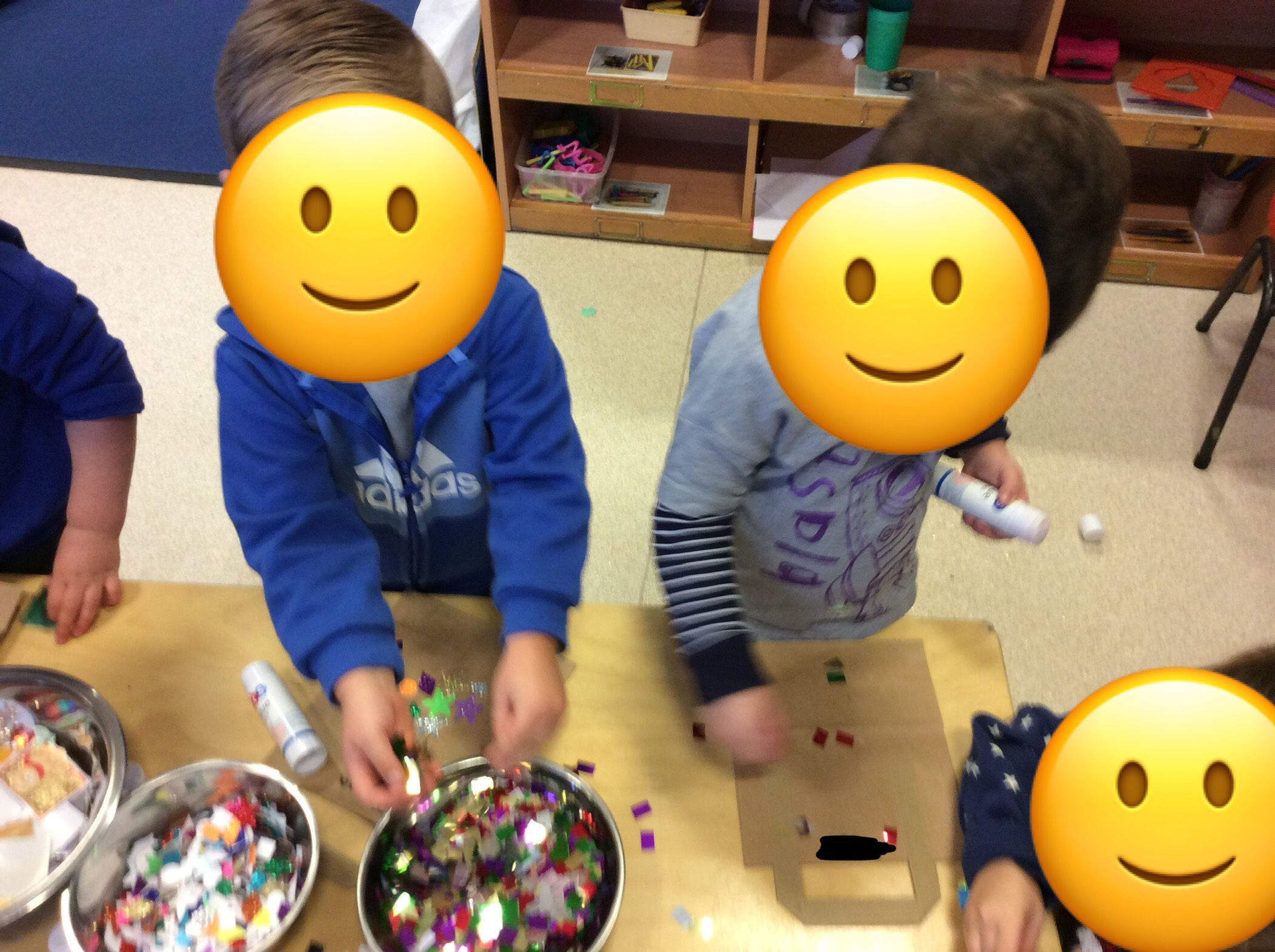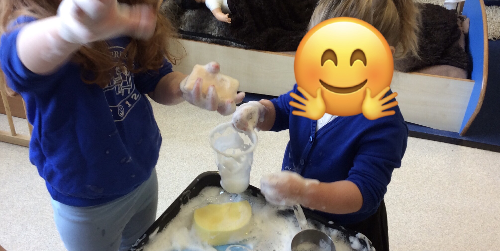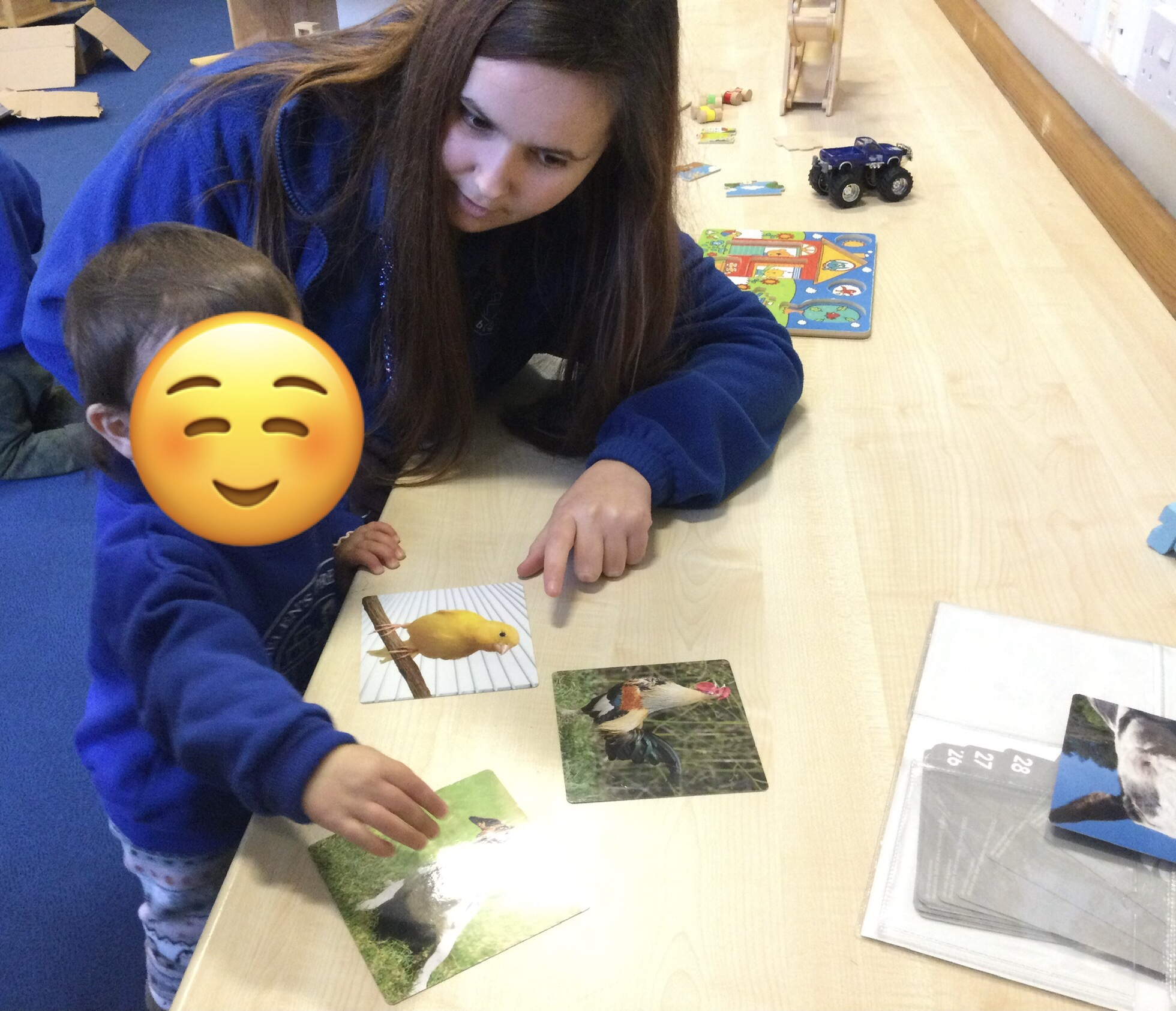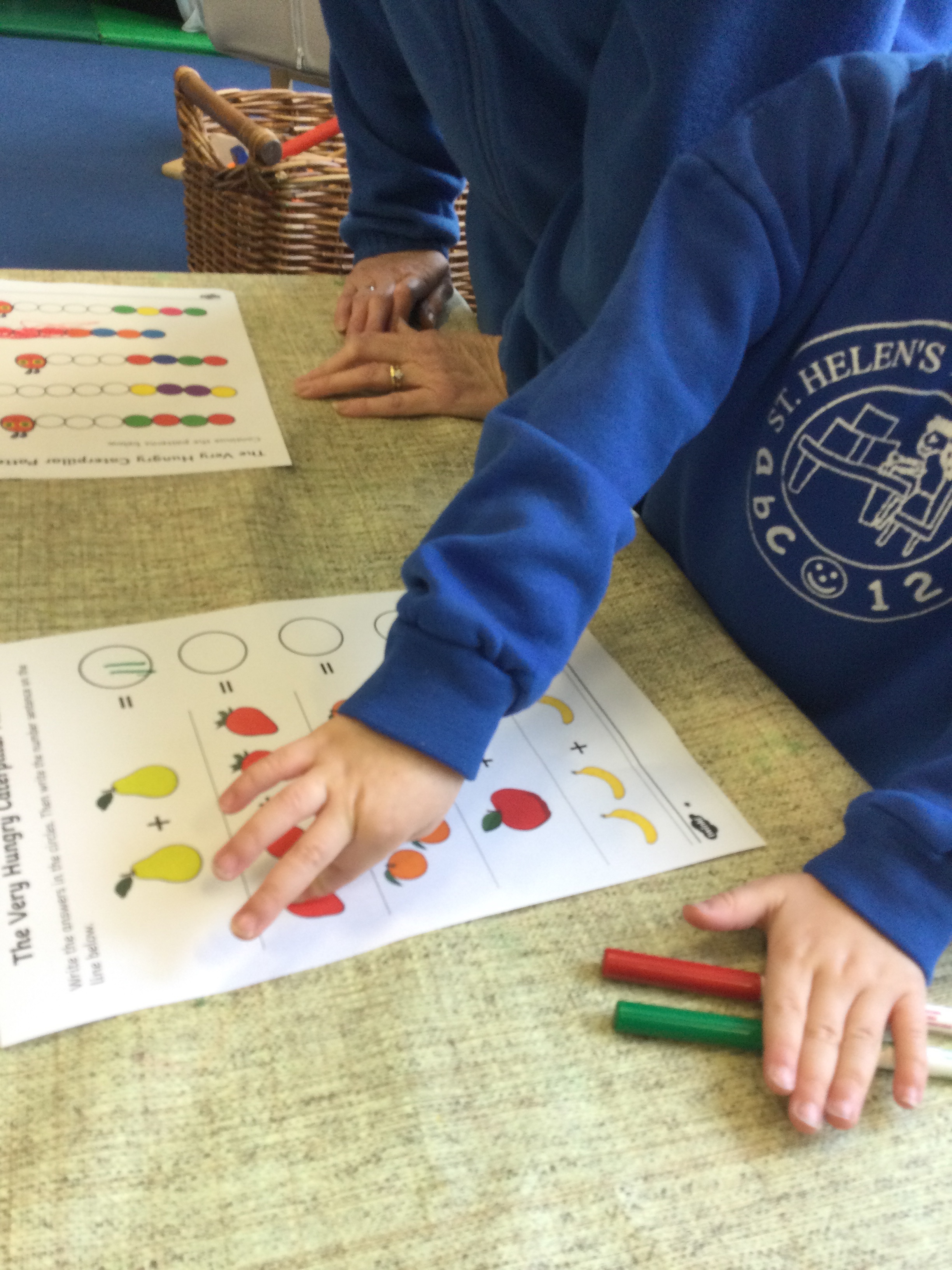 The children love to sing “we’re going on a bear hunt” and in orange room the children used random items that they pretended were binoculars to look out of the windows for bears. Following on from this, we made our own binoculars. We extended this activity even further by going into the garden using the bug hunt resources to search for living creatures (luckily no bears were found). All the while promoting care and concern for living things and our environment.
