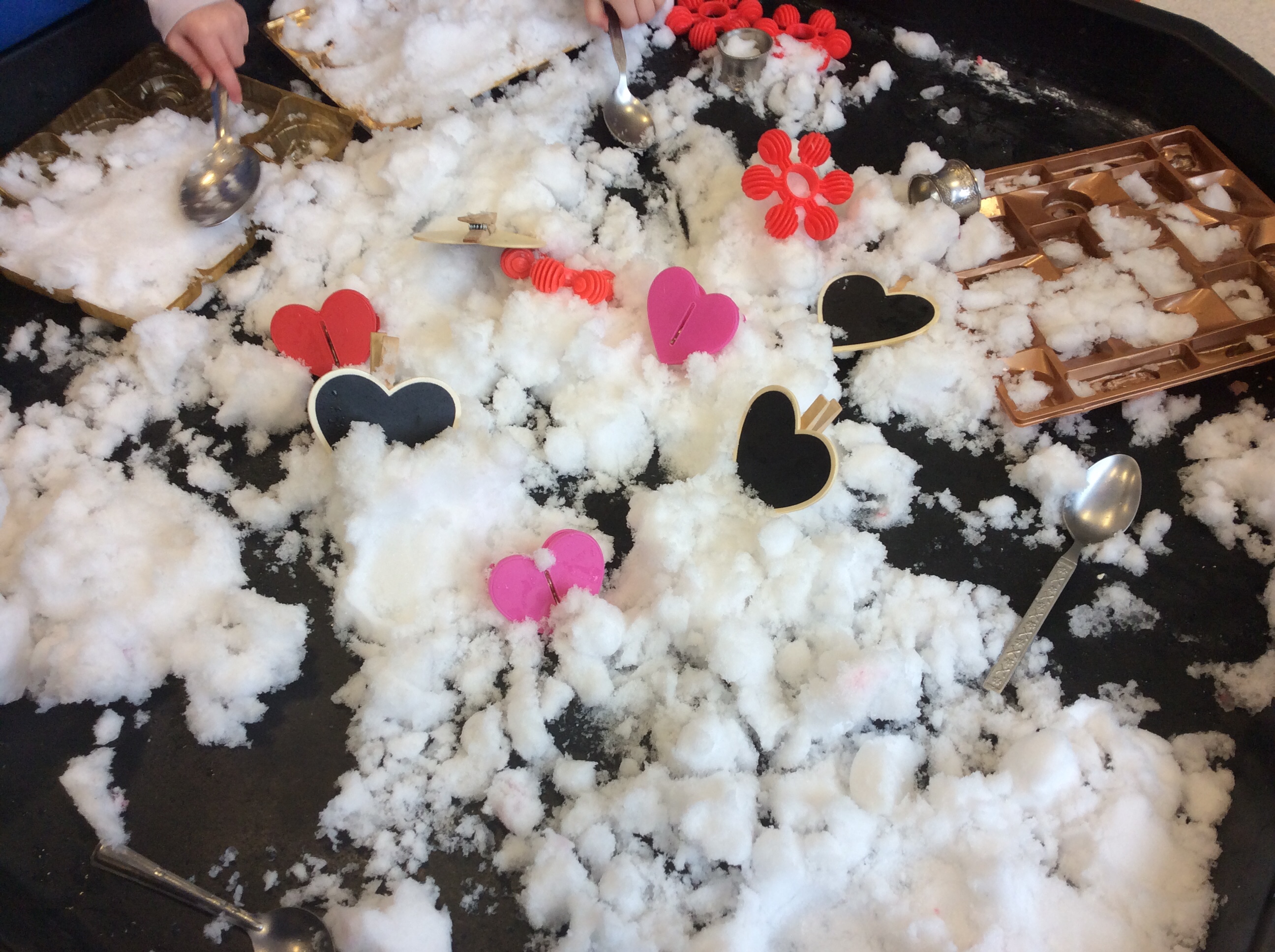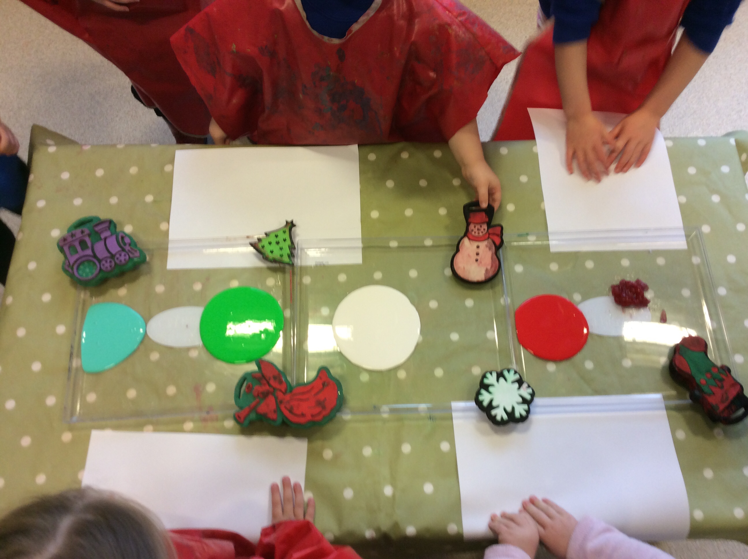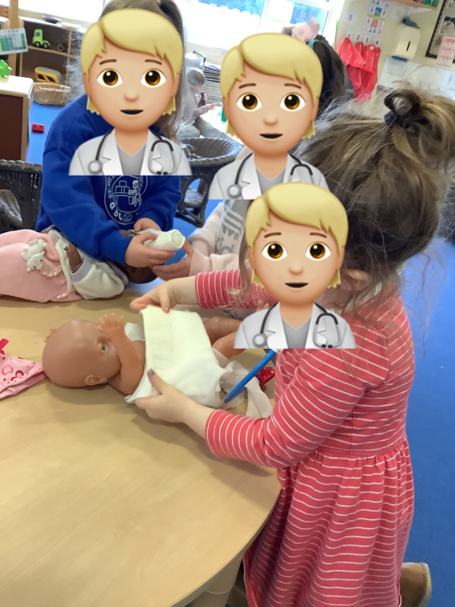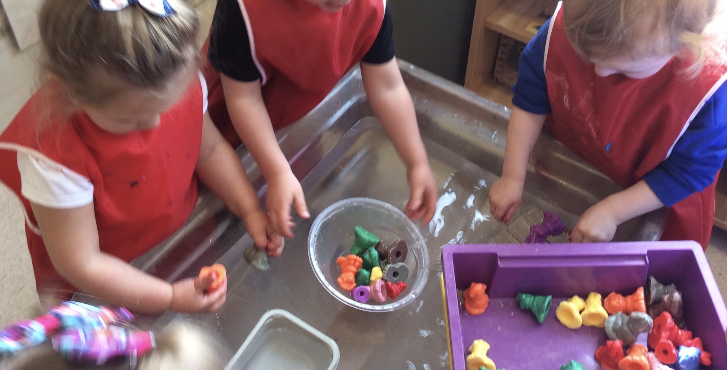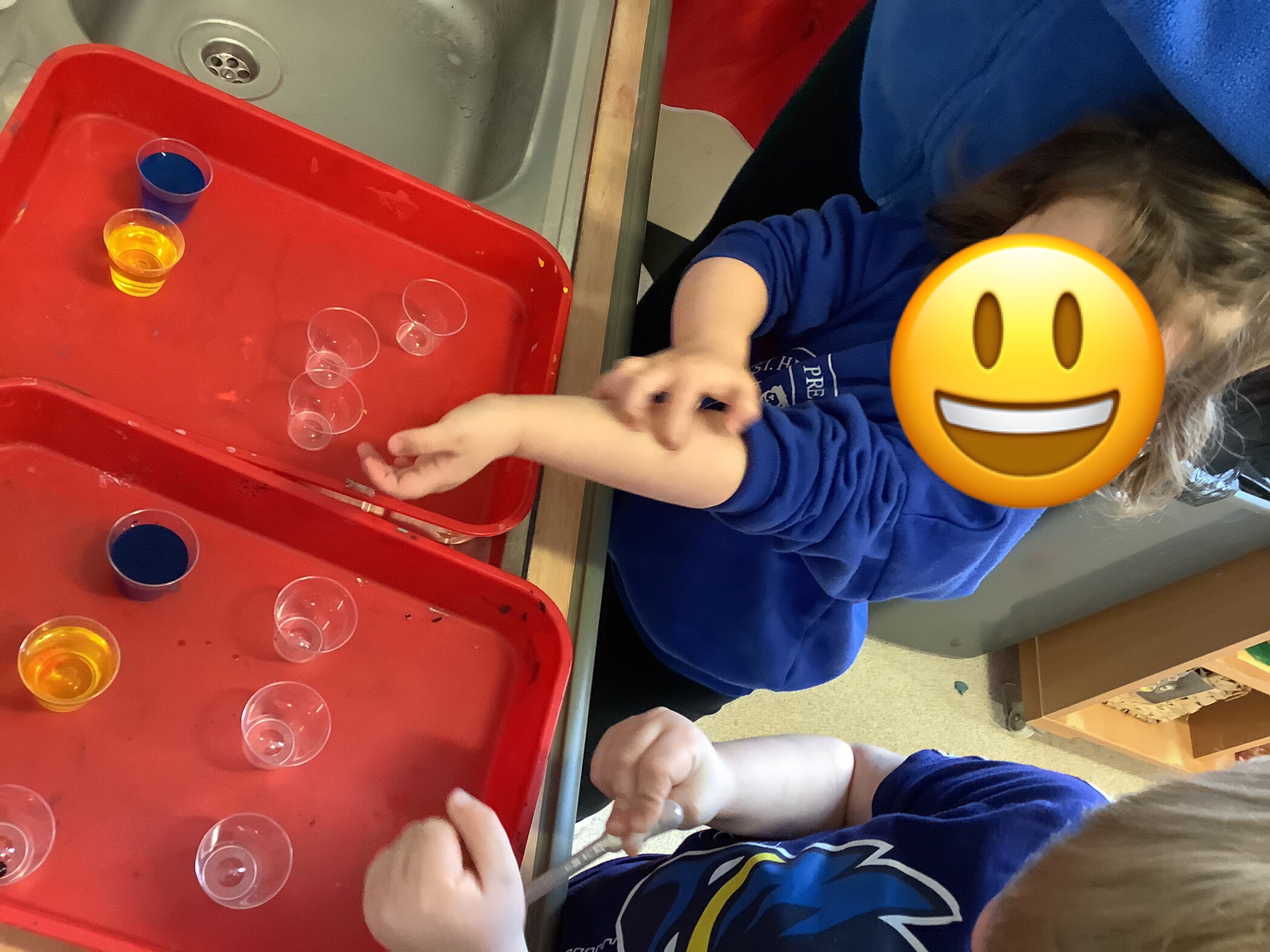 The children love to sing “we’re going on a bear hunt” and in orange room the children used random items that they pretended were binoculars to look out of the windows for bears. Following on from this, we made our own binoculars. We extended this activity even further by going into the garden using the bug hunt resources to search for living creatures (luckily no bears were found). All the while promoting care and concern for living things and our environment.