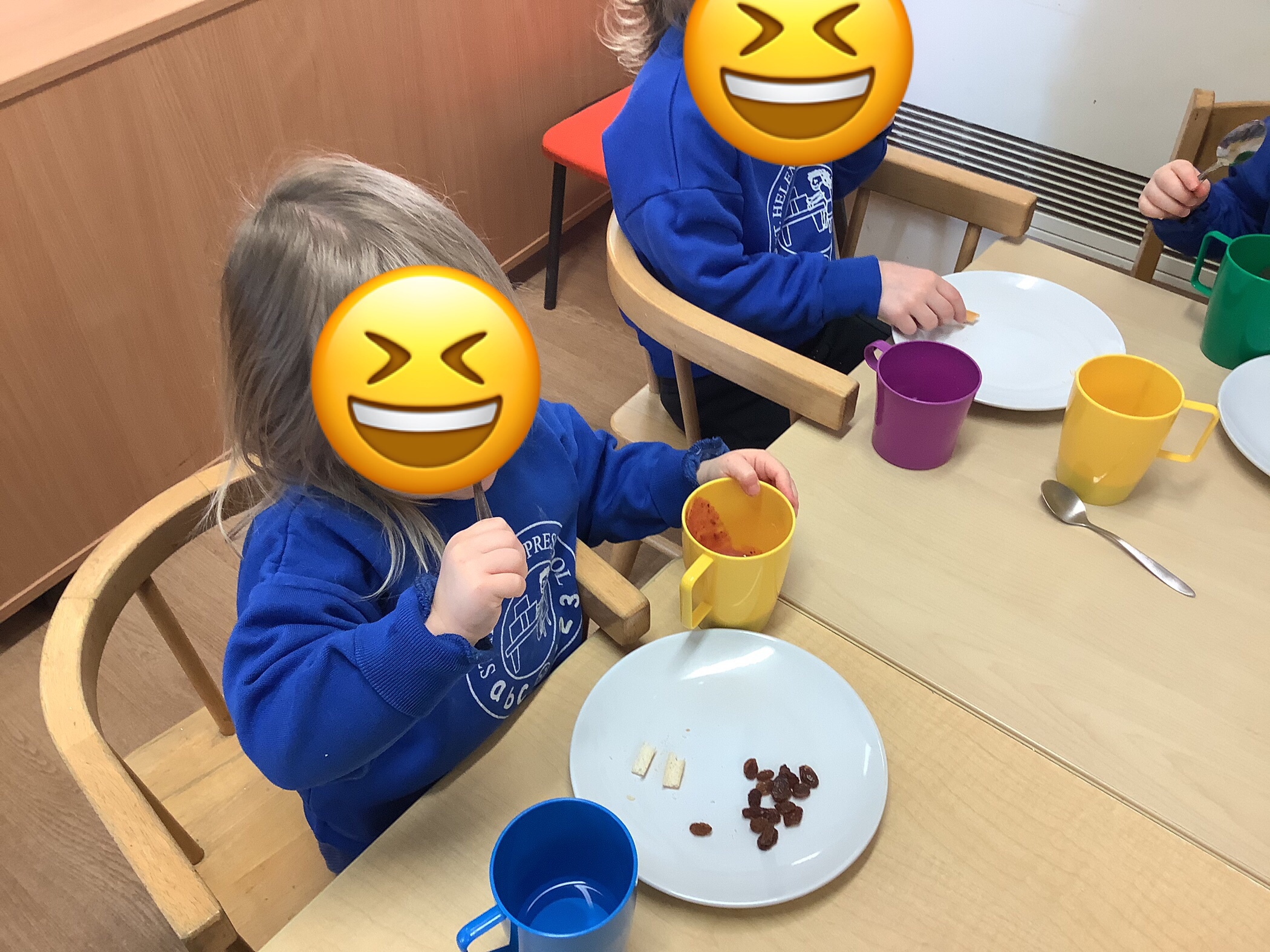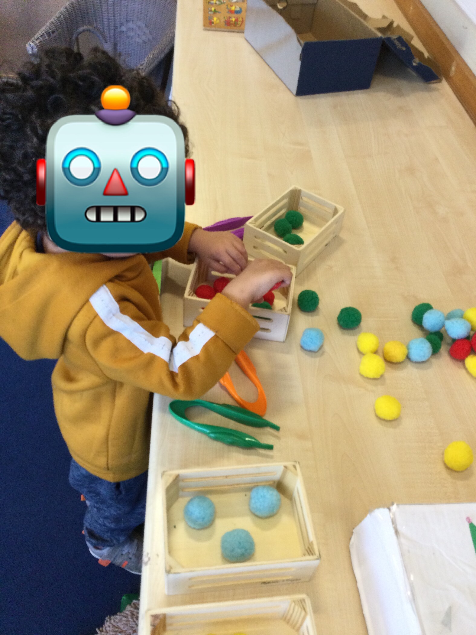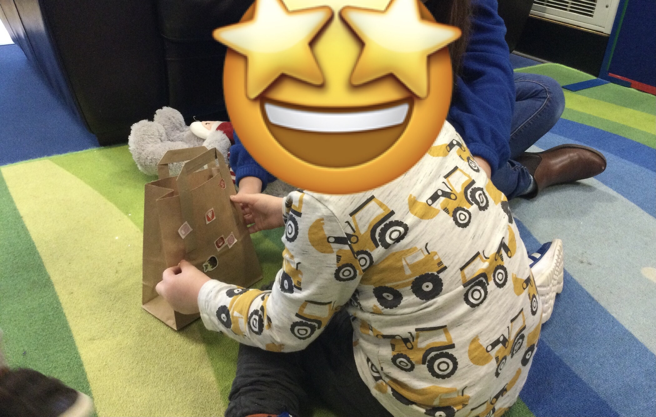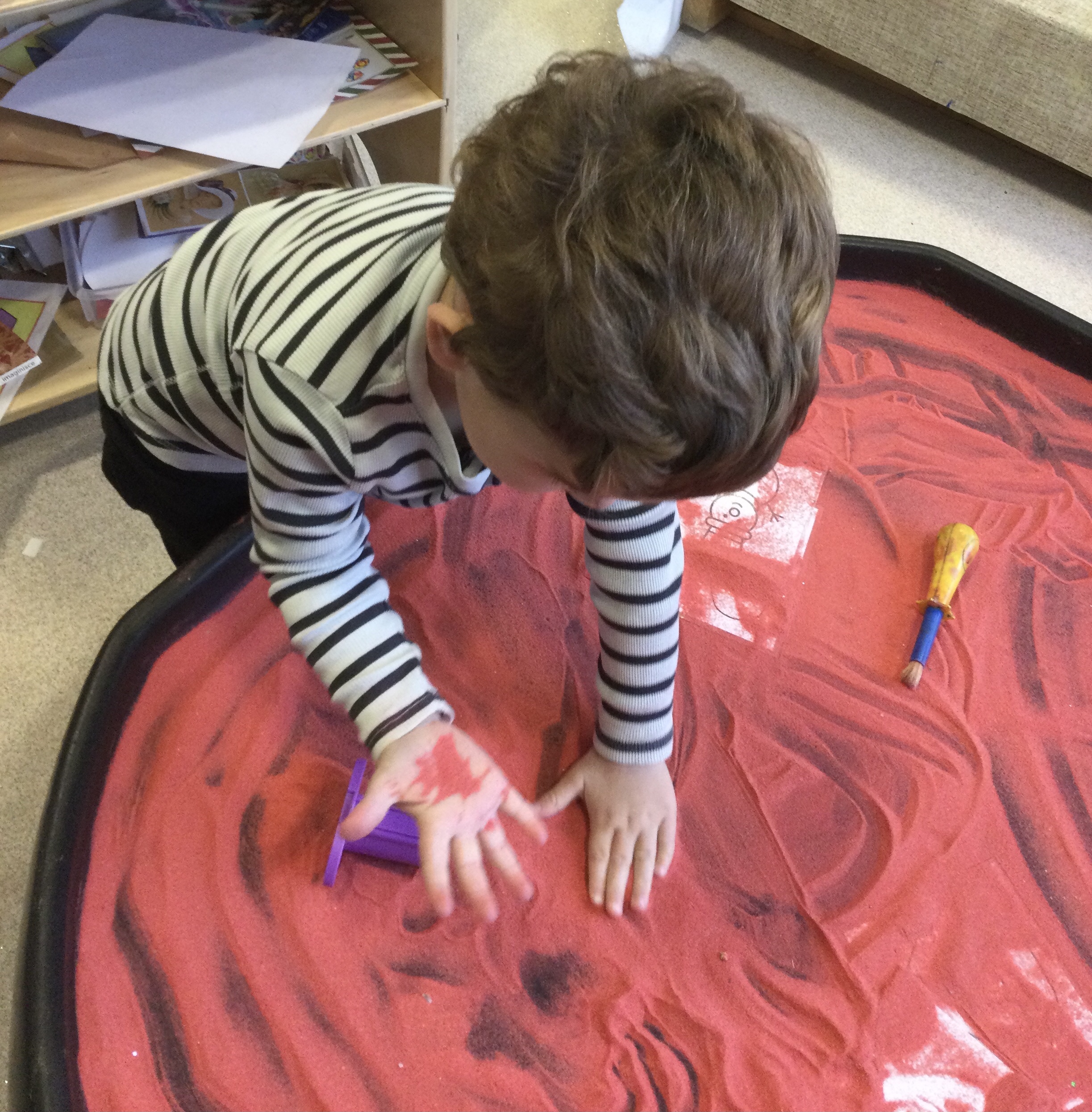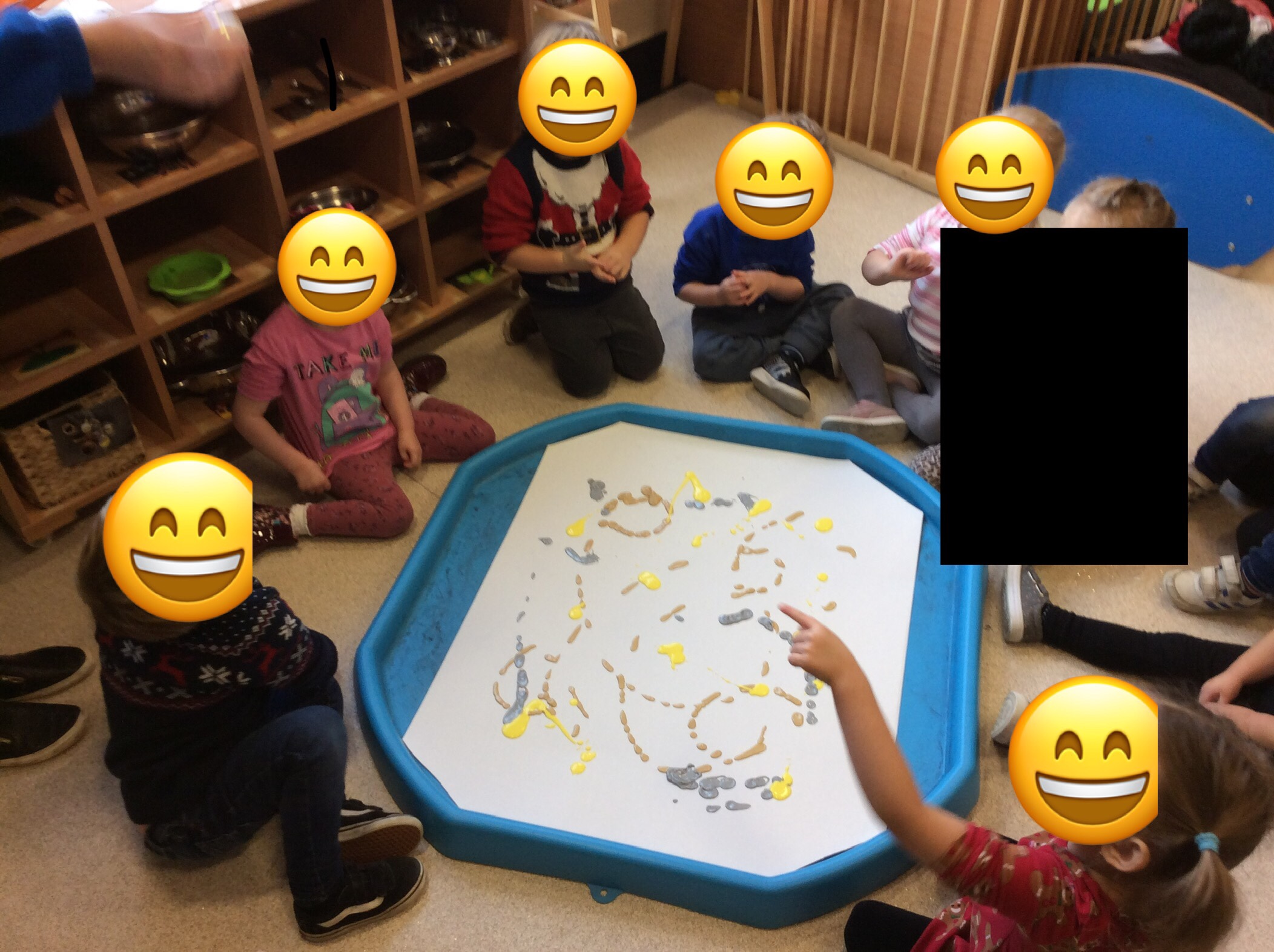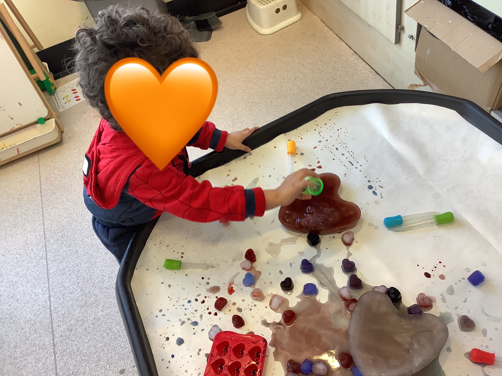 The children love to sing “we’re going on a bear hunt” and in orange room the children used random items that they pretended were binoculars to look out of the windows for bears. Following on from this, we made our own binoculars. We extended this activity even further by going into the garden using the bug hunt resources to search for living creatures (luckily no bears were found). All the while promoting care and concern for living things and our environment.