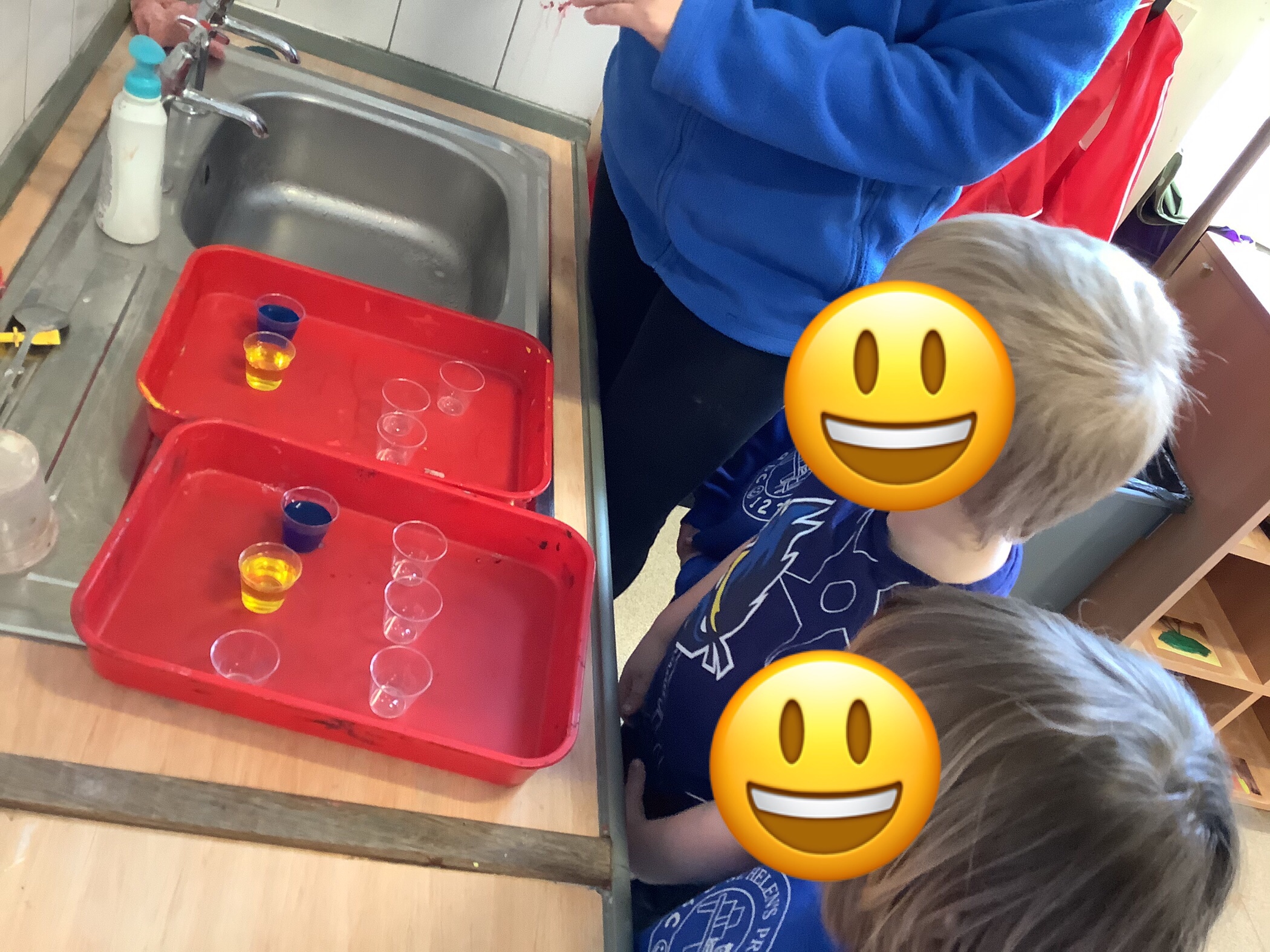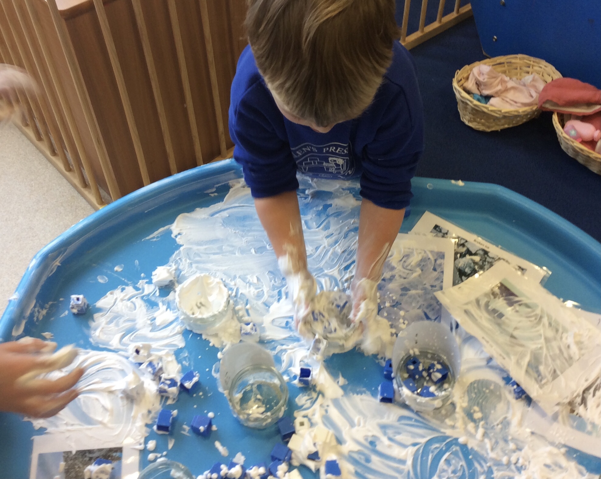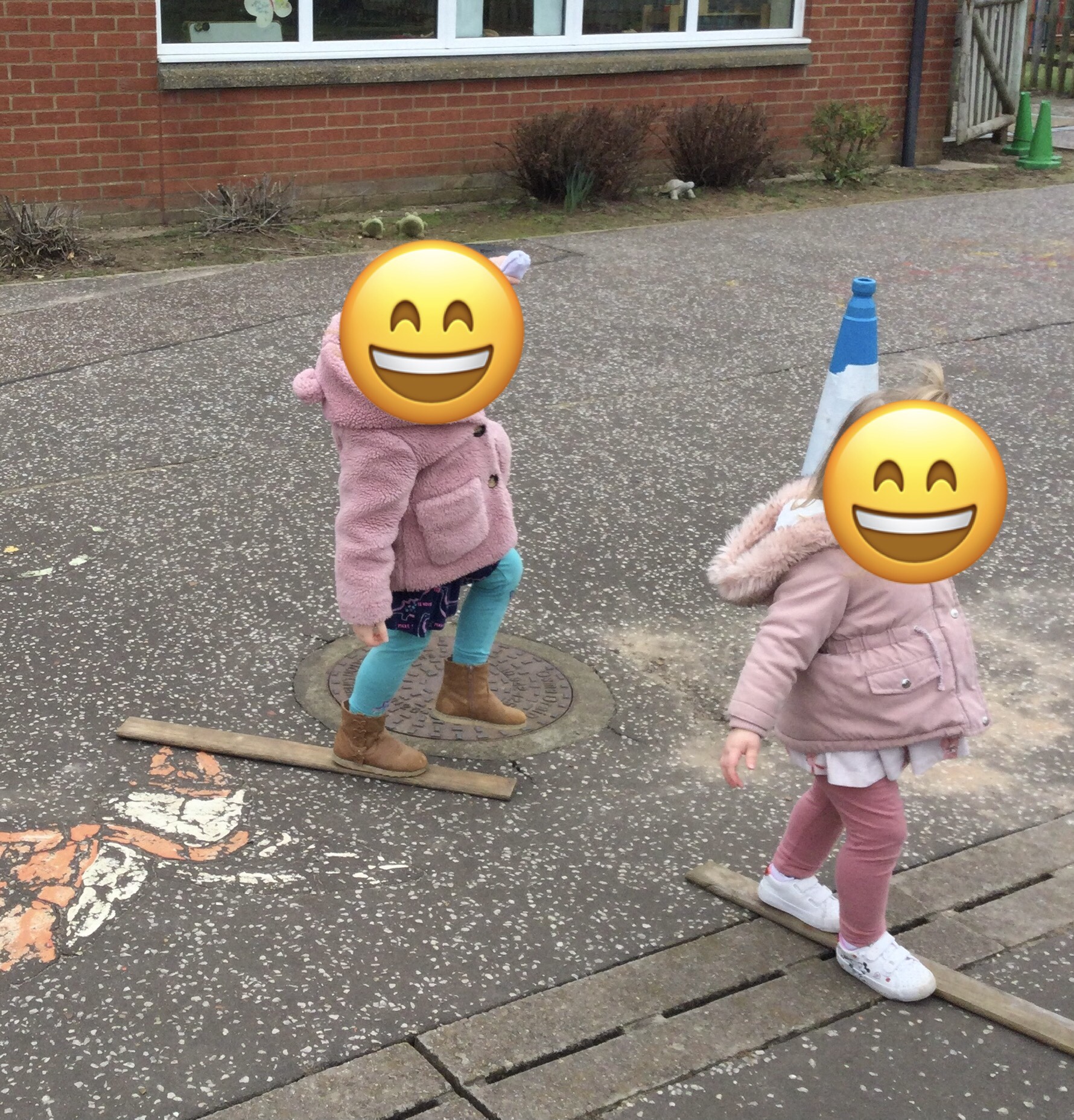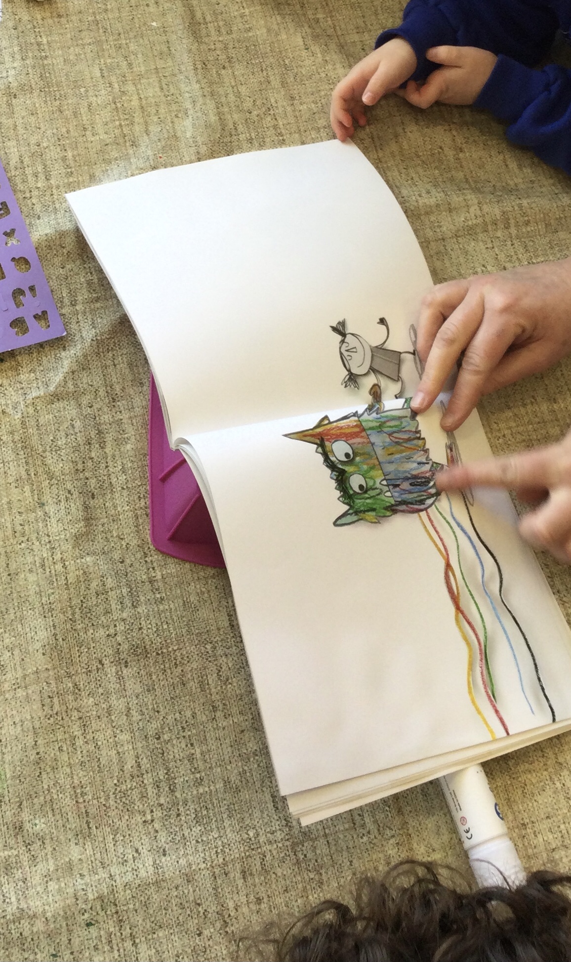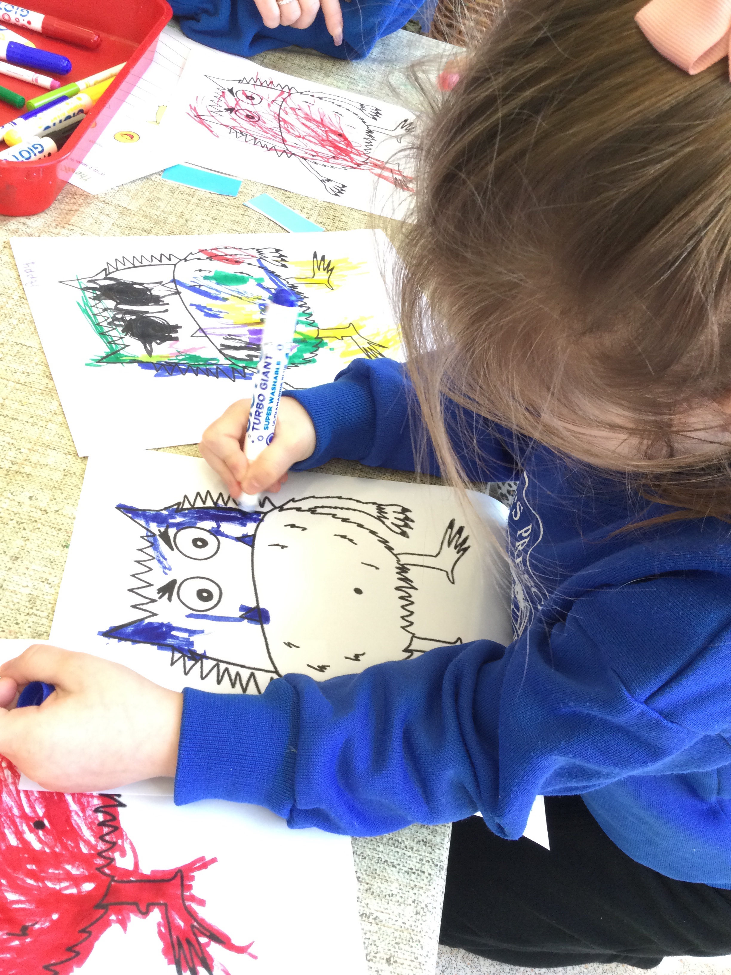 The children love to sing “we’re going on a bear hunt” and in orange room the children used random items that they pretended were binoculars to look out of the windows for bears. Following on from this, we made our own binoculars. We extended this activity even further by going into the garden using the bug hunt resources to search for living creatures (luckily no bears were found). All the while promoting care and concern for living things and our environment.