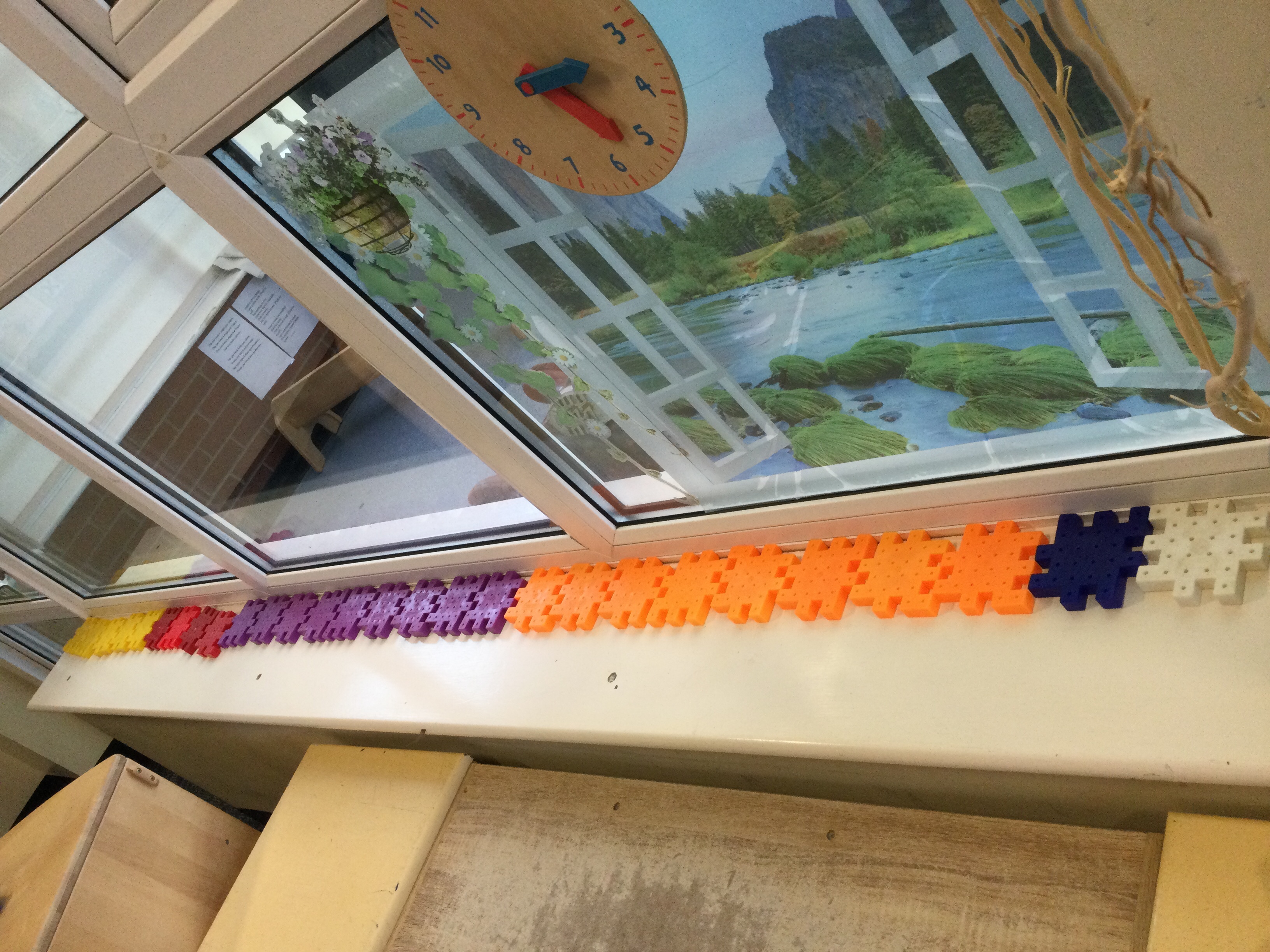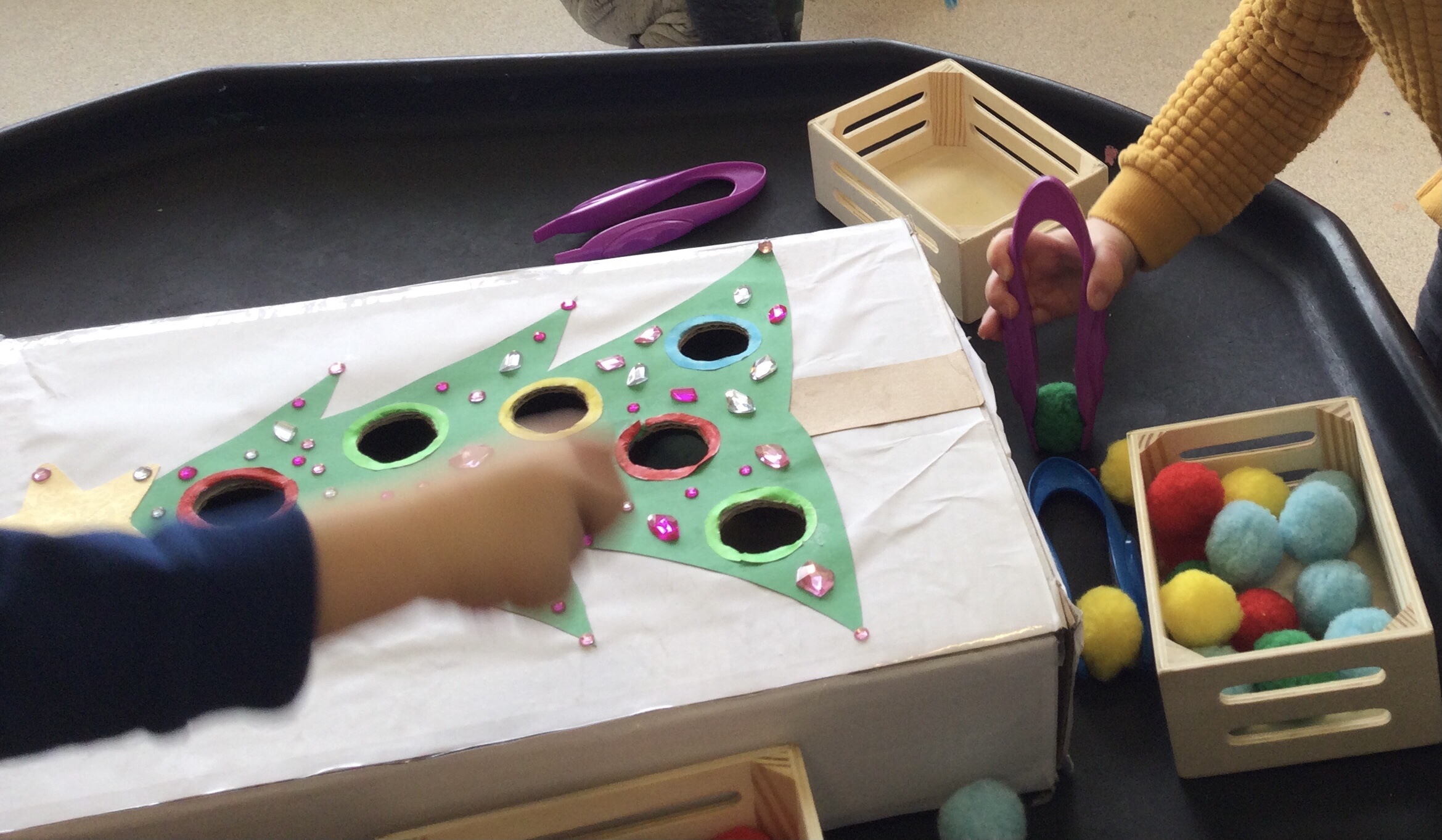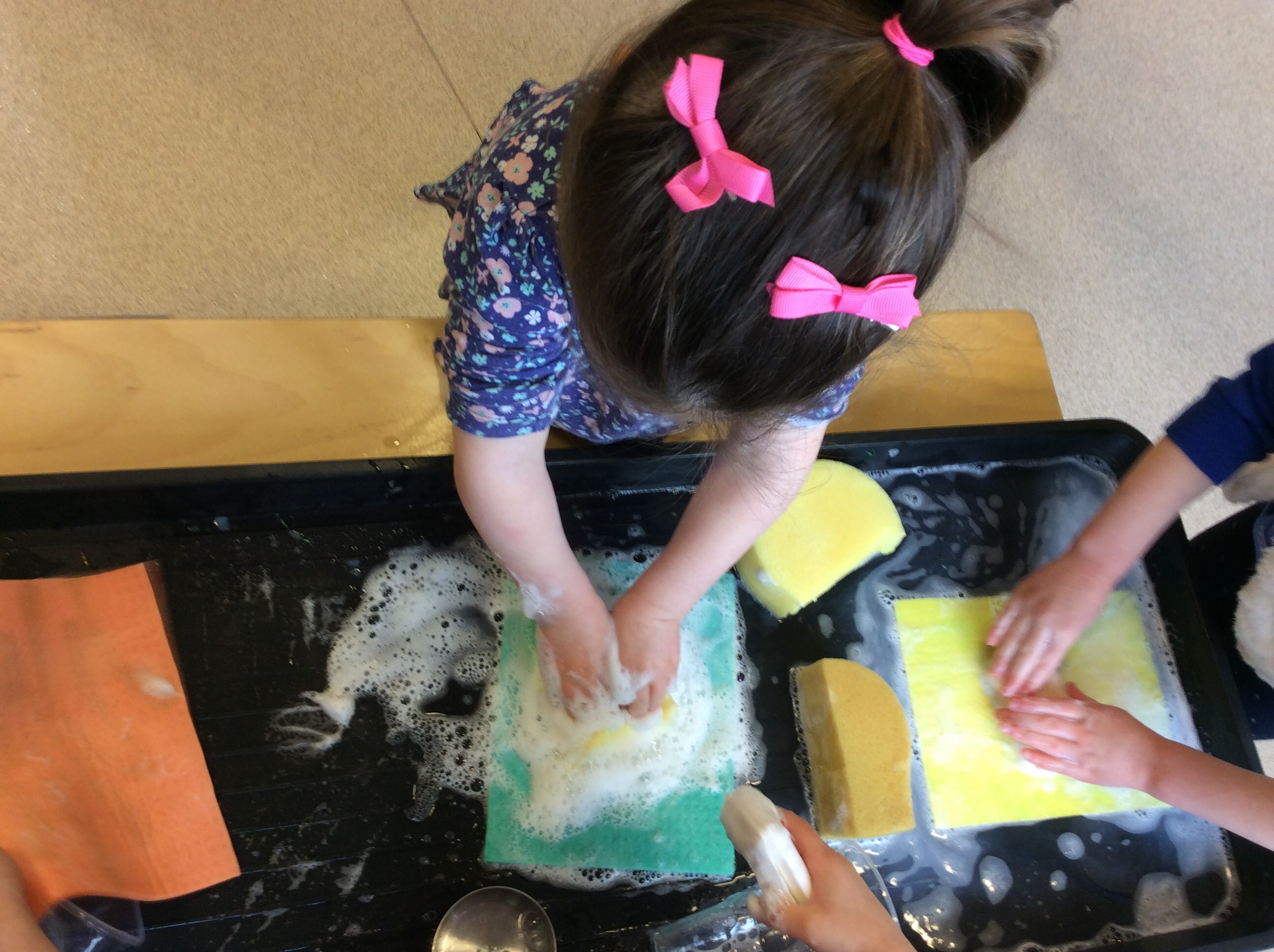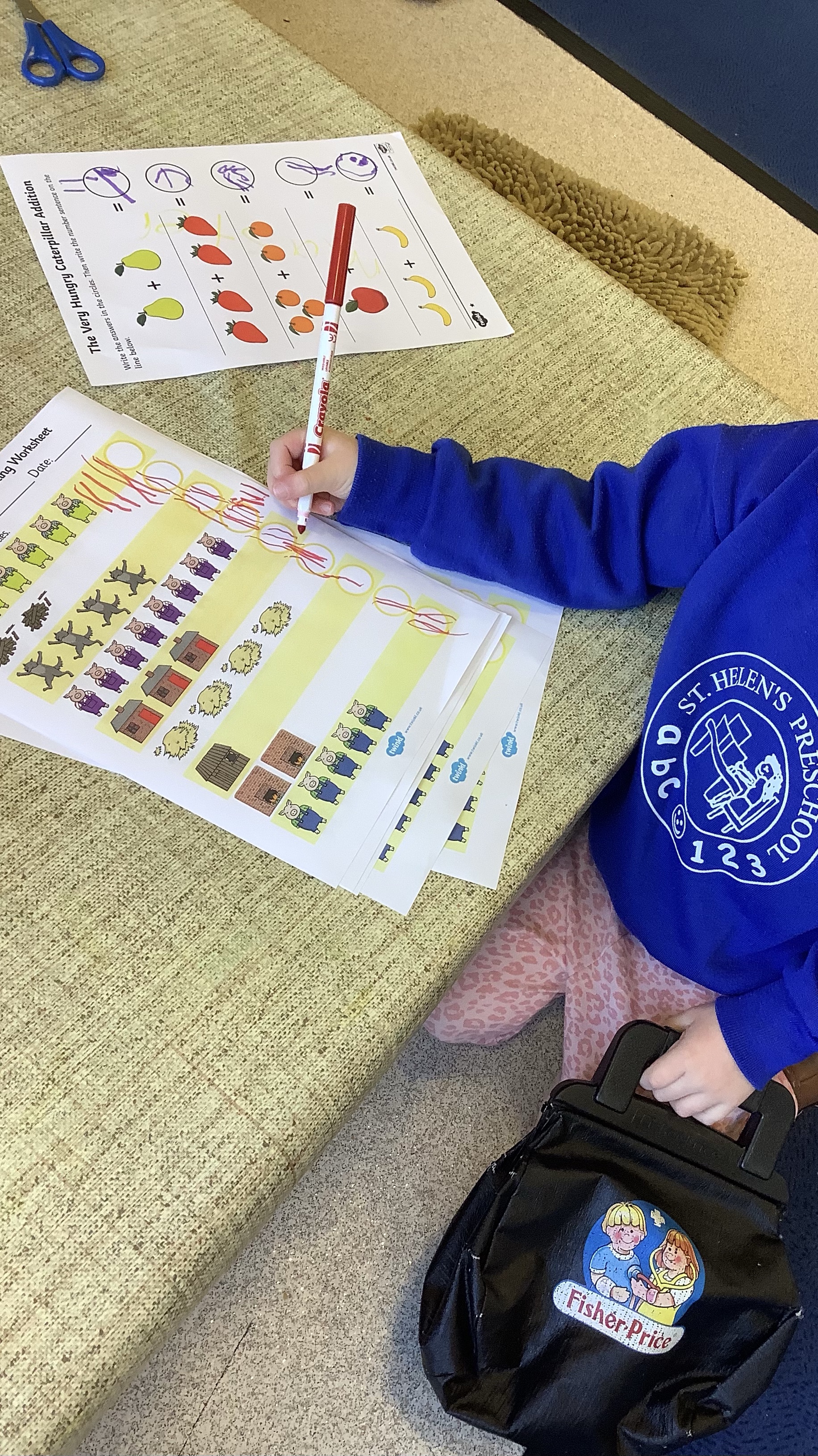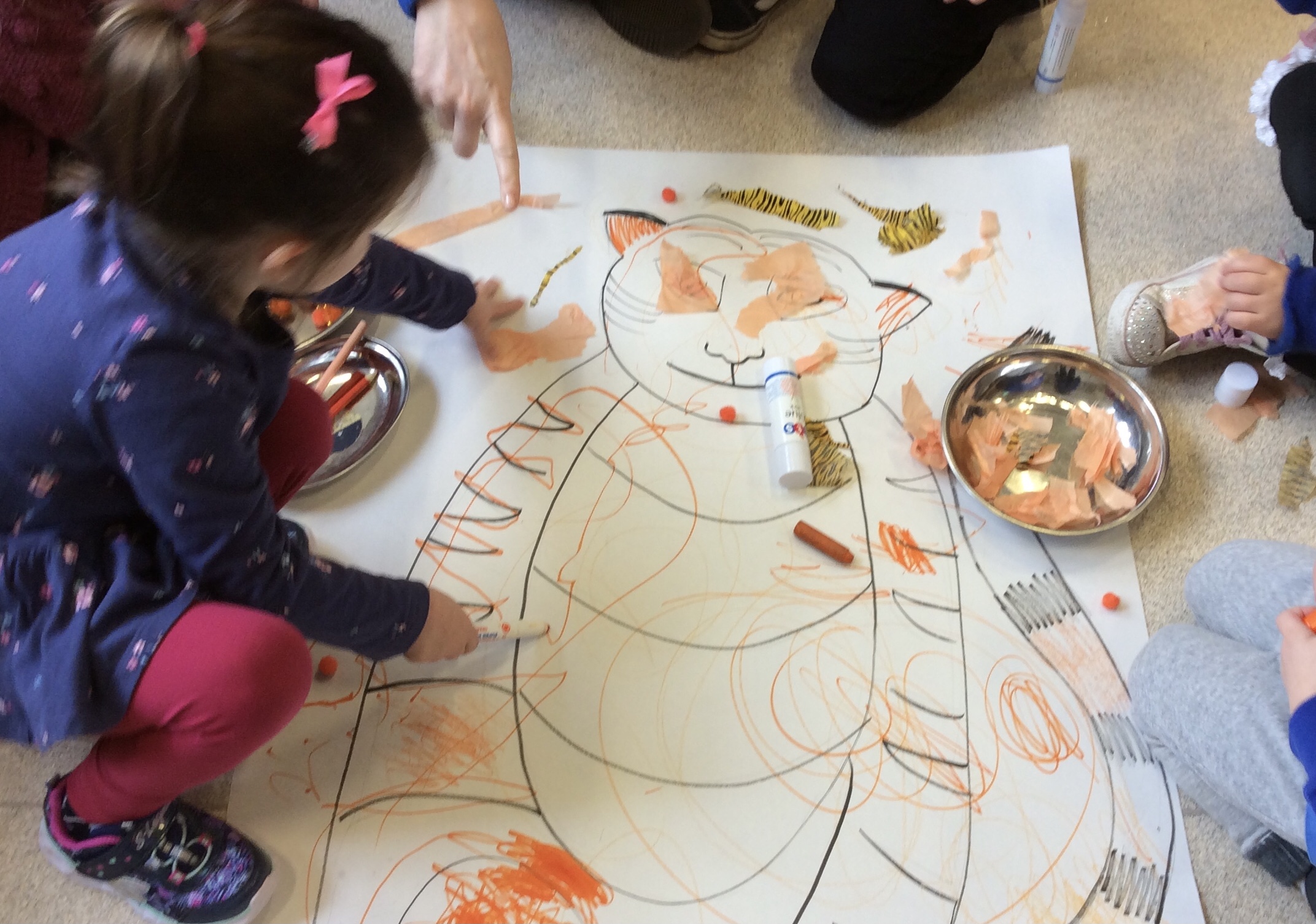 The children love to sing “we’re going on a bear hunt” and in orange room the children used random items that they pretended were binoculars to look out of the windows for bears. Following on from this, we made our own binoculars. We extended this activity even further by going into the garden using the bug hunt resources to search for living creatures (luckily no bears were found). All the while promoting care and concern for living things and our environment.