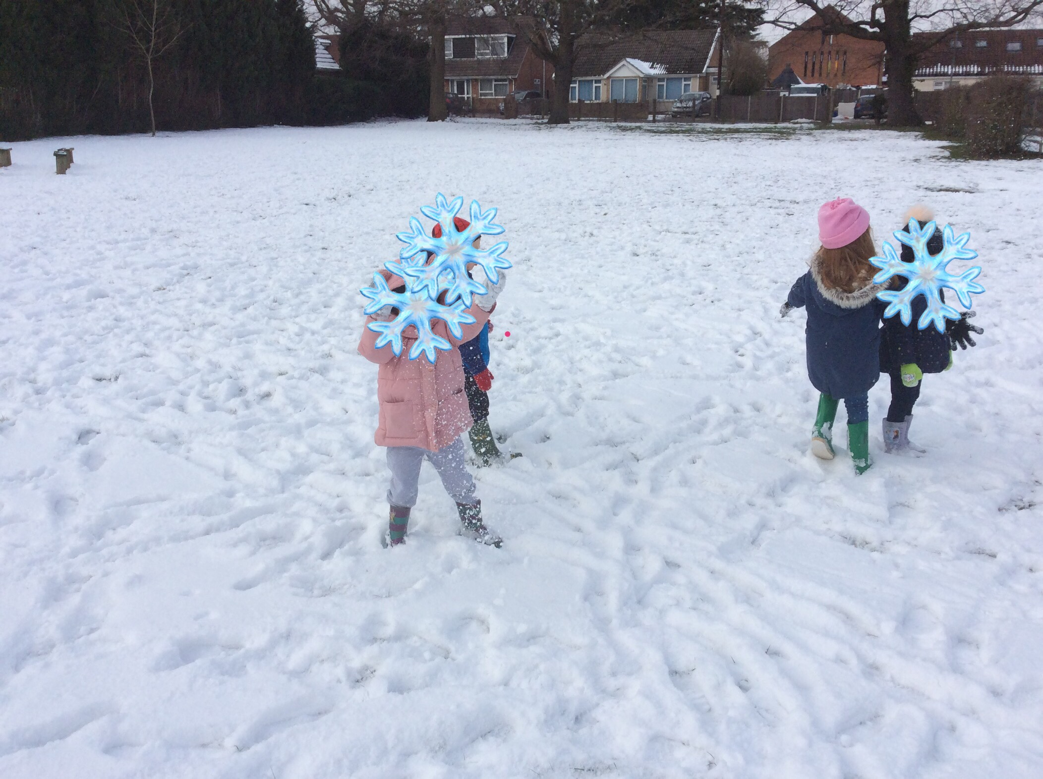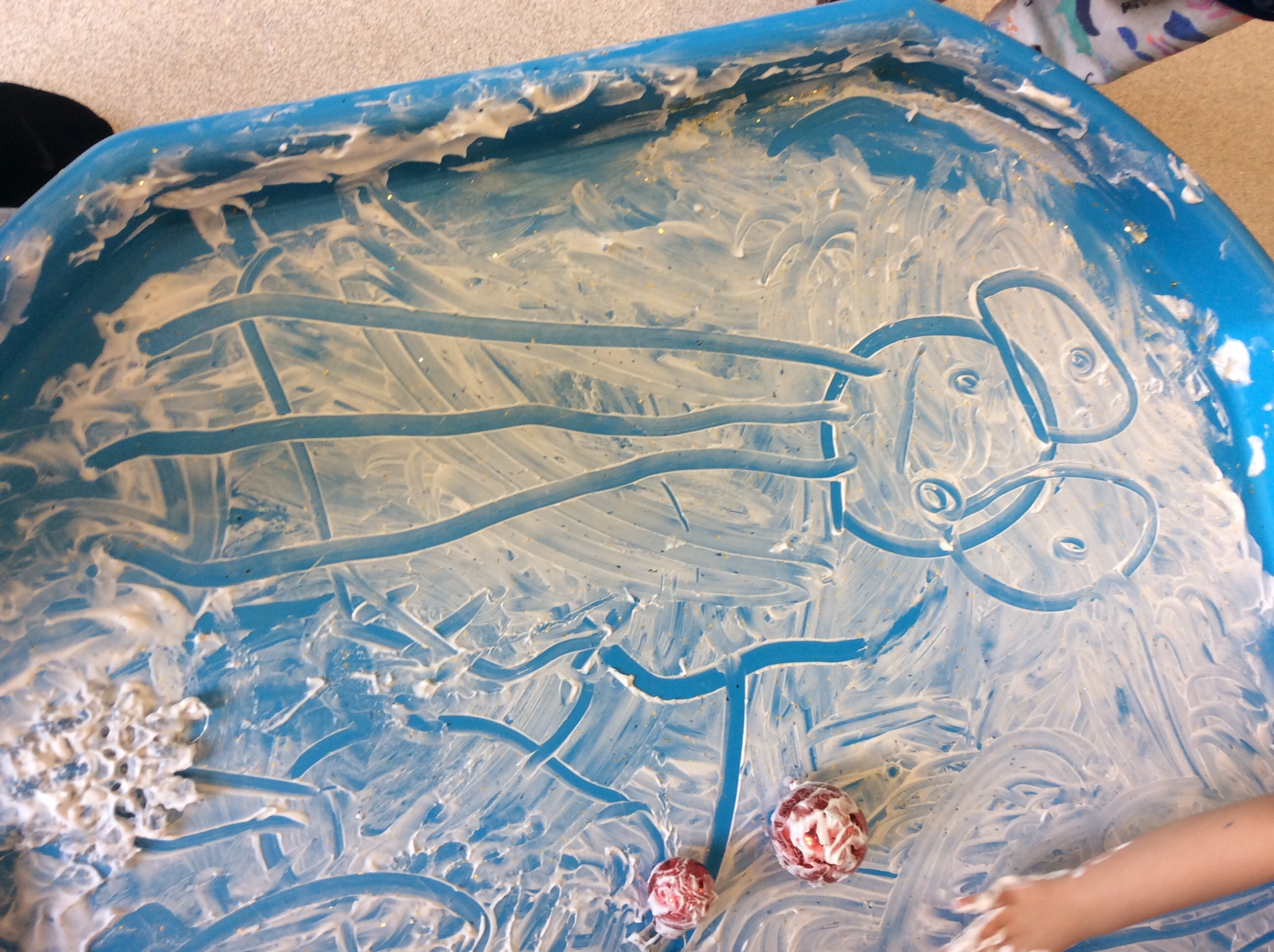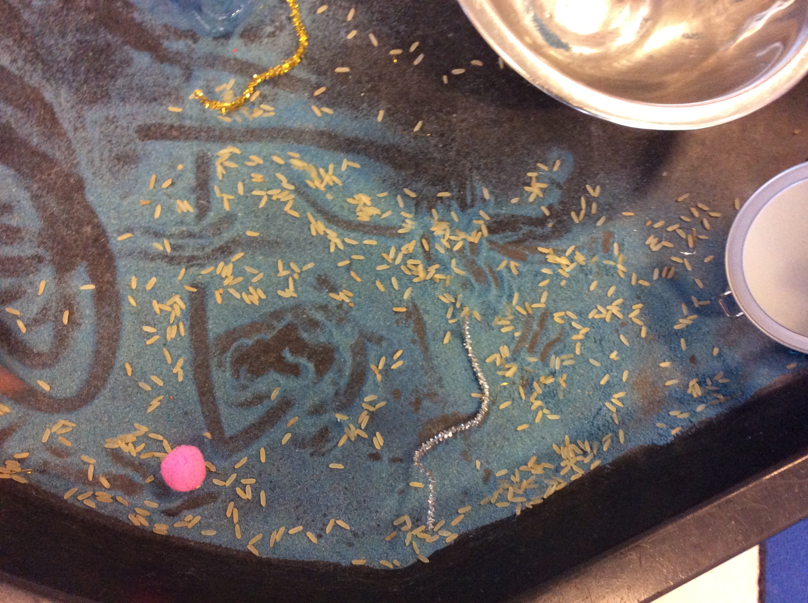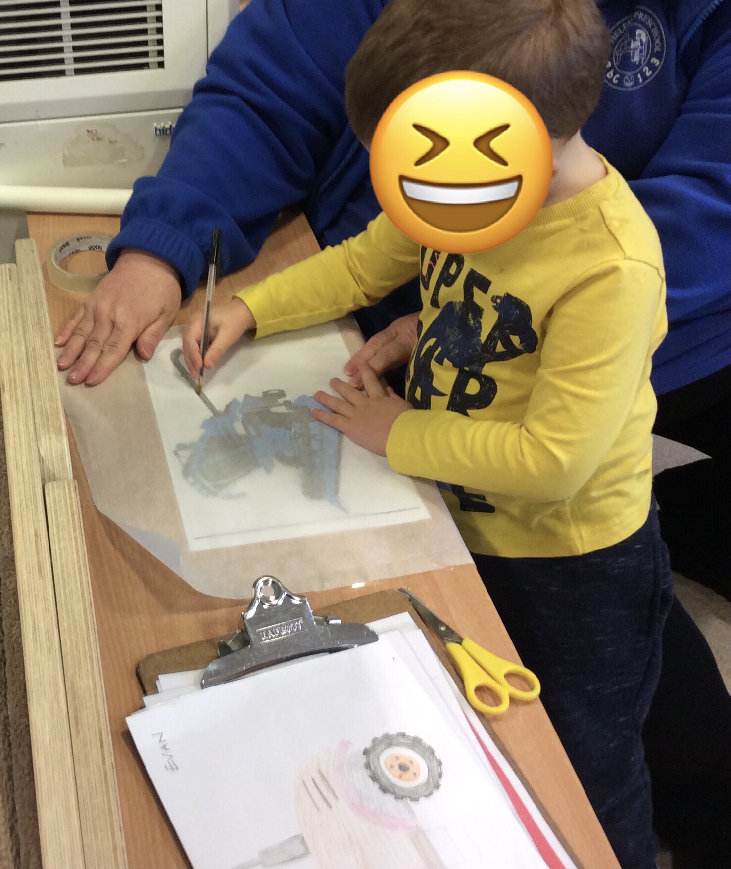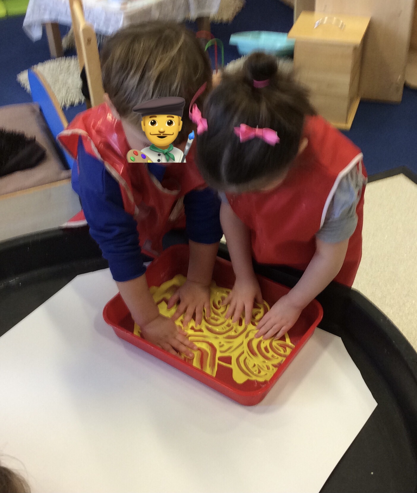 The children love to sing “we’re going on a bear hunt” and in orange room the children used random items that they pretended were binoculars to look out of the windows for bears. Following on from this, we made our own binoculars. We extended this activity even further by going into the garden using the bug hunt resources to search for living creatures (luckily no bears were found). All the while promoting care and concern for living things and our environment.