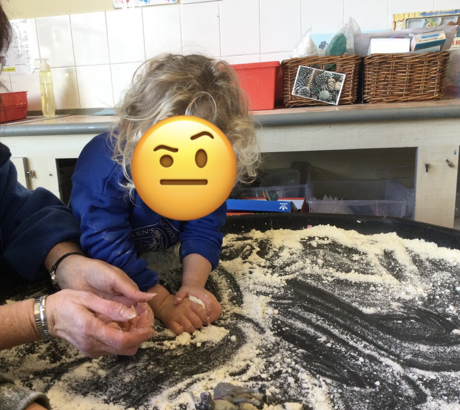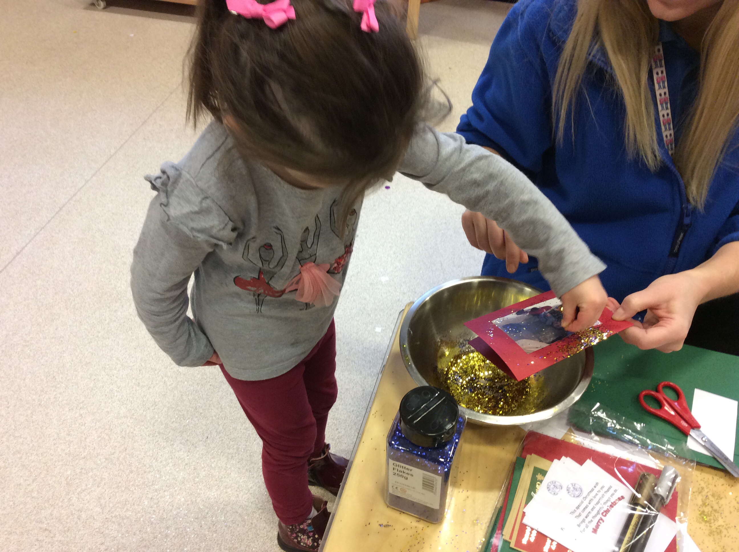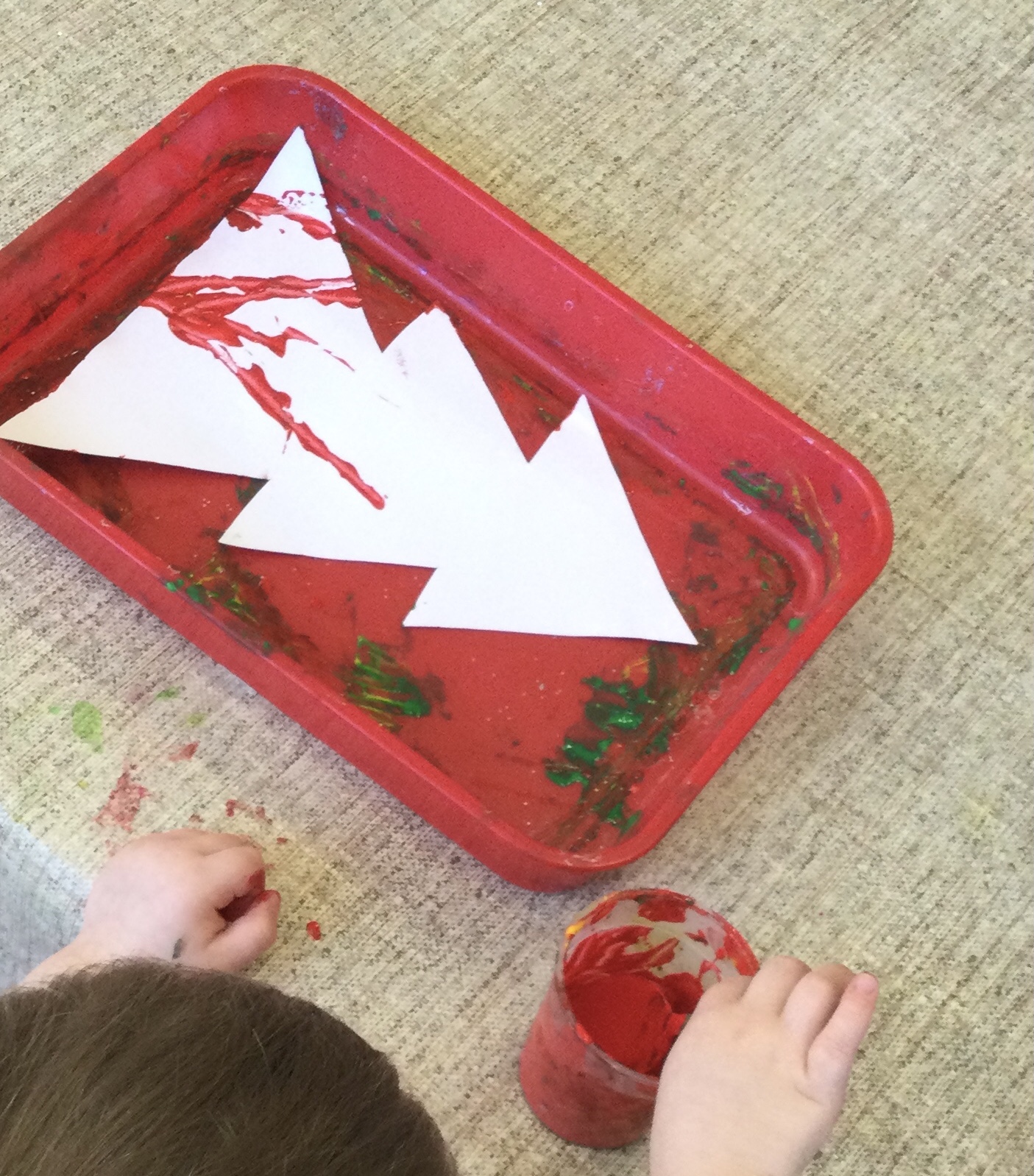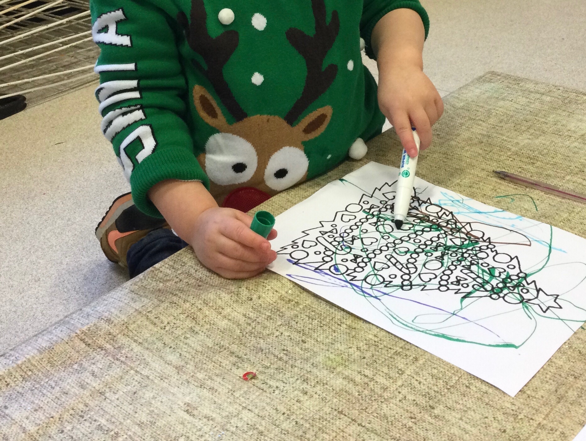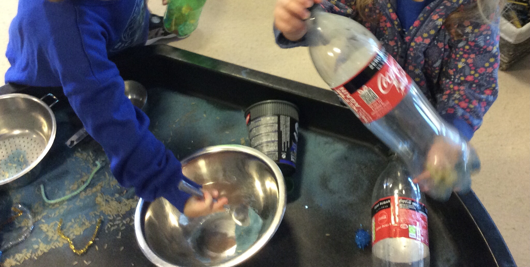 The children love to sing “we’re going on a bear hunt” and in orange room the children used random items that they pretended were binoculars to look out of the windows for bears. Following on from this, we made our own binoculars. We extended this activity even further by going into the garden using the bug hunt resources to search for living creatures (luckily no bears were found). All the while promoting care and concern for living things and our environment.