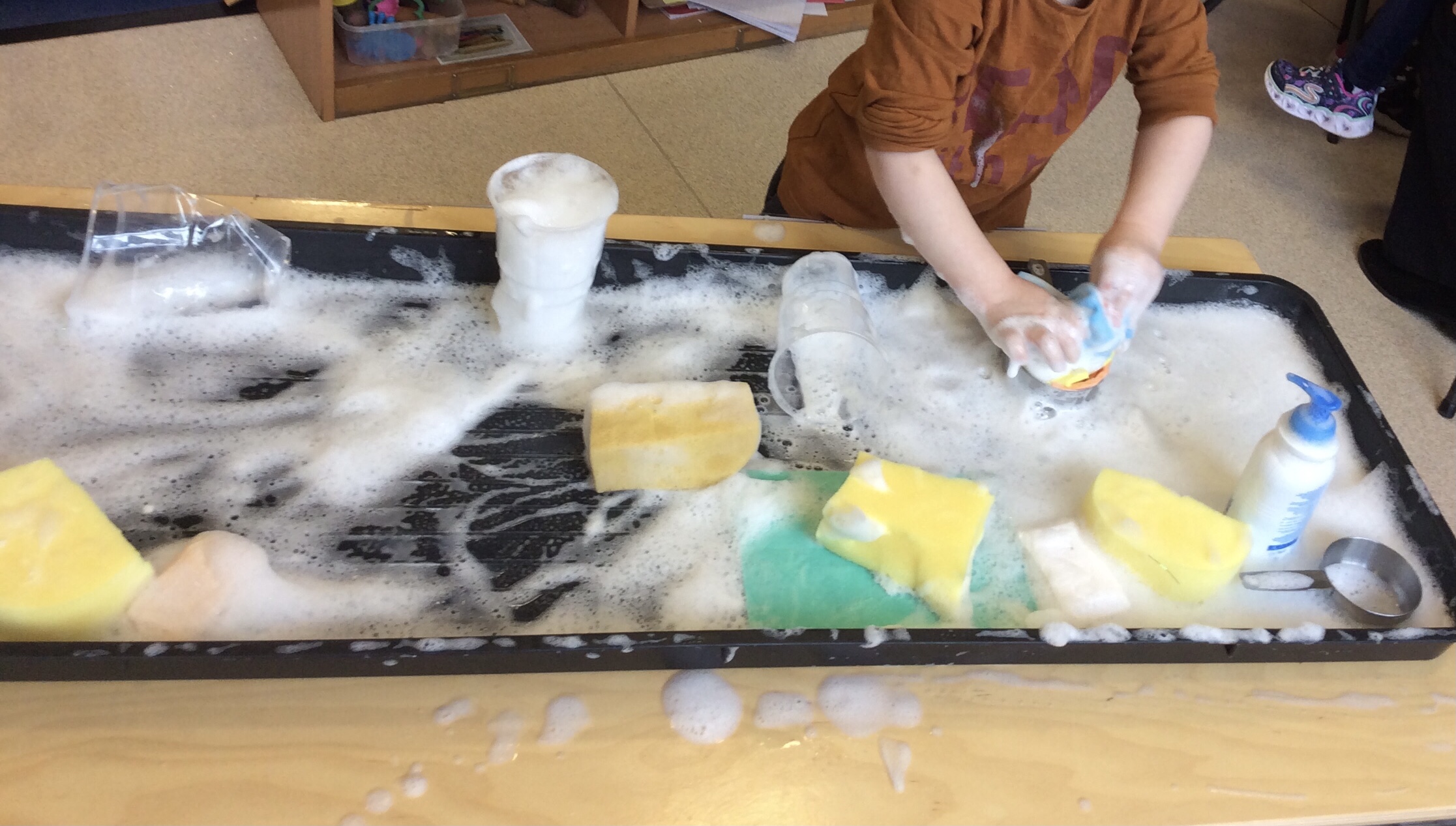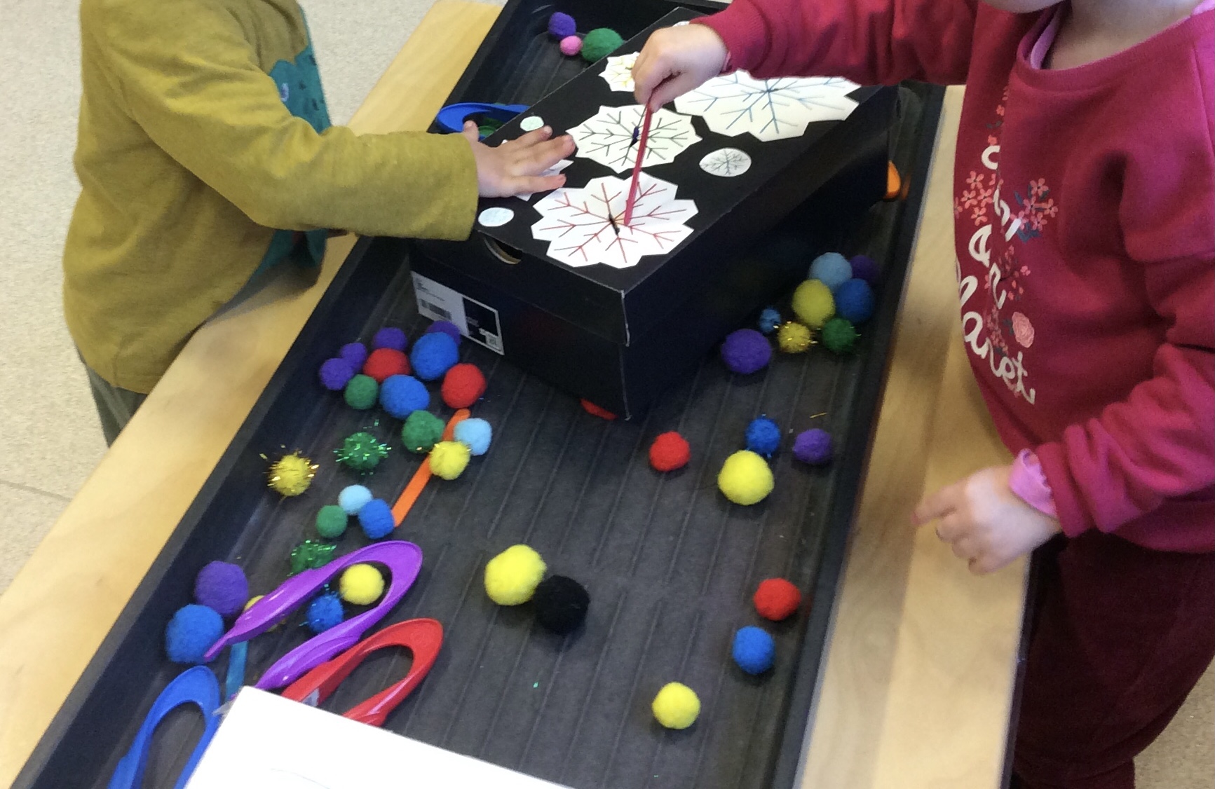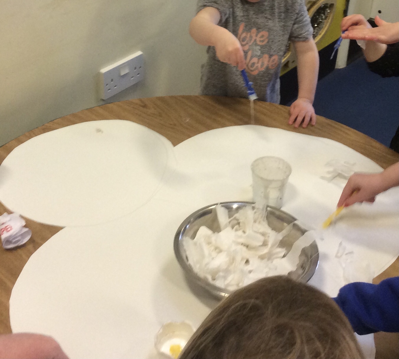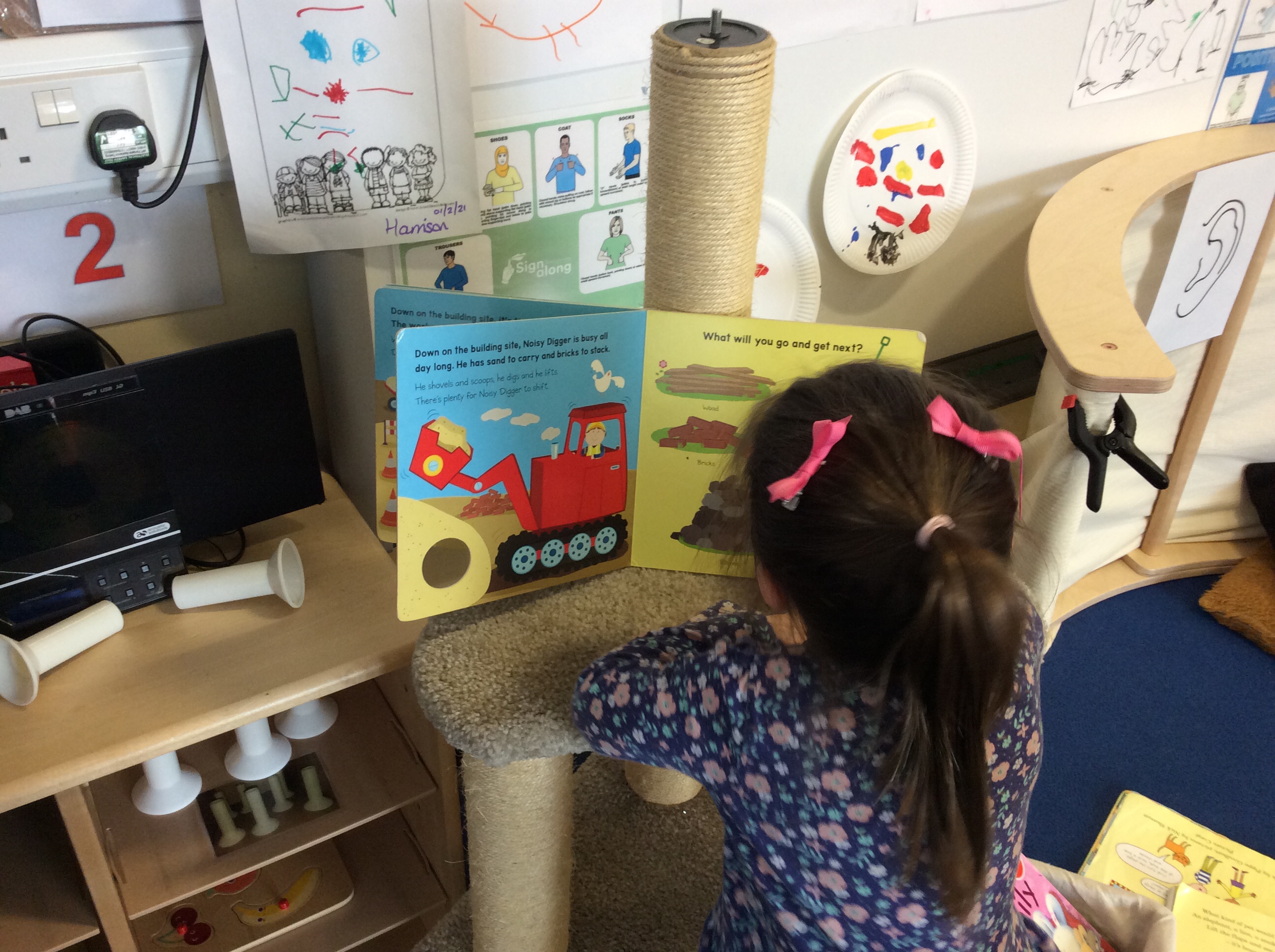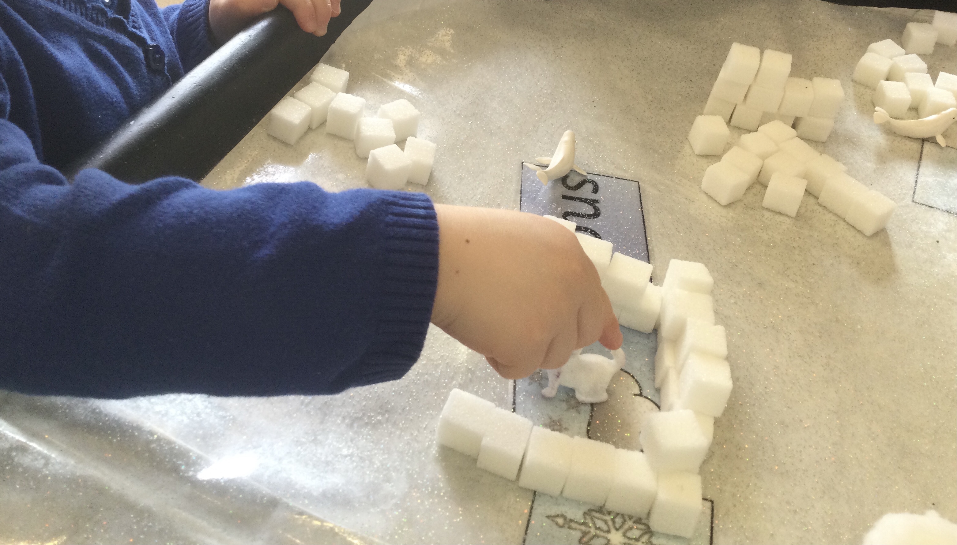 The children love to sing “we’re going on a bear hunt” and in orange room the children used random items that they pretended were binoculars to look out of the windows for bears. Following on from this, we made our own binoculars. We extended this activity even further by going into the garden using the bug hunt resources to search for living creatures (luckily no bears were found). All the while promoting care and concern for living things and our environment.
