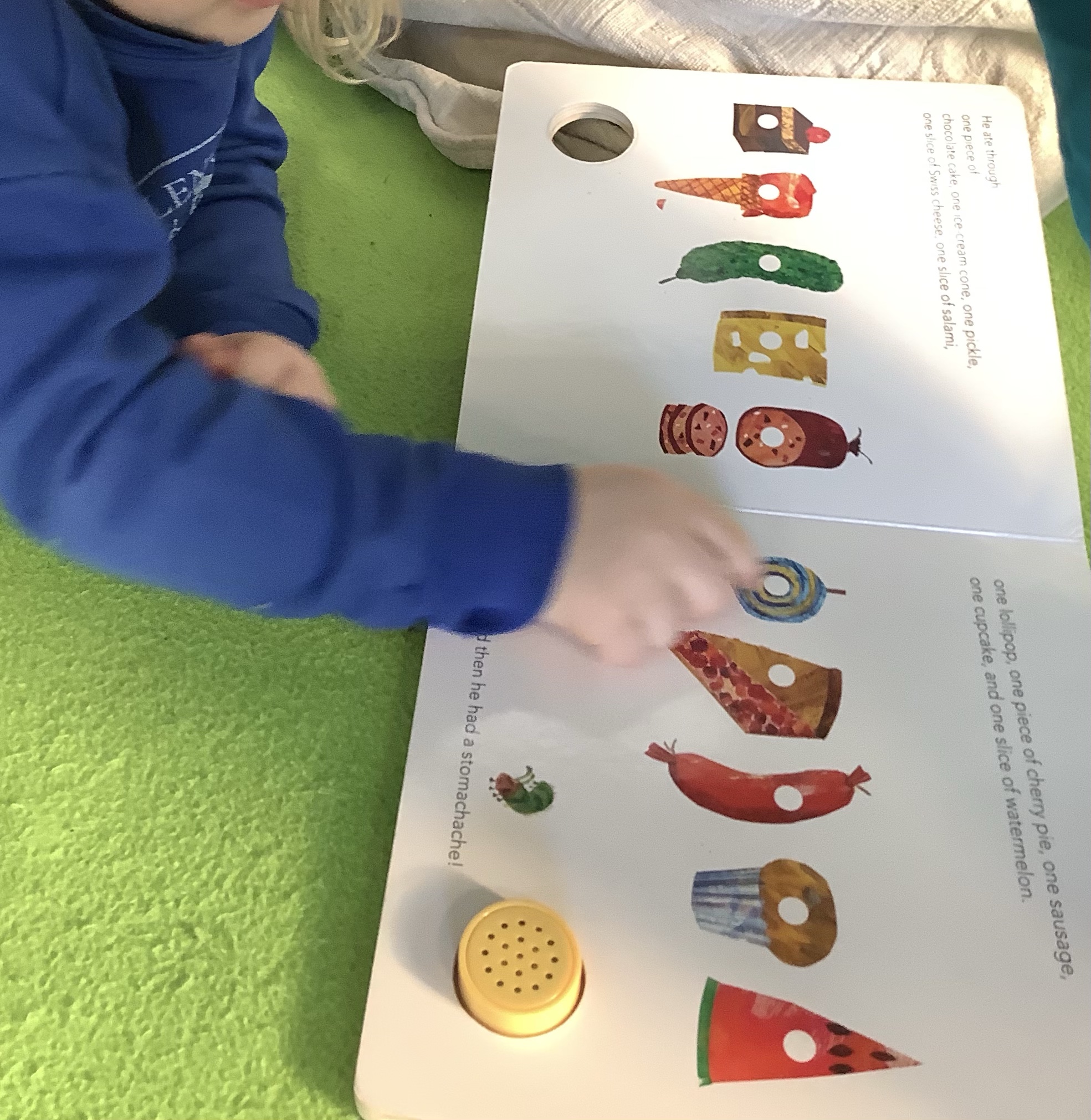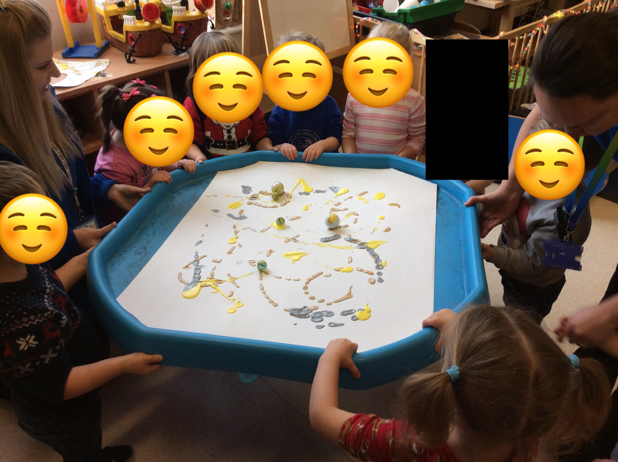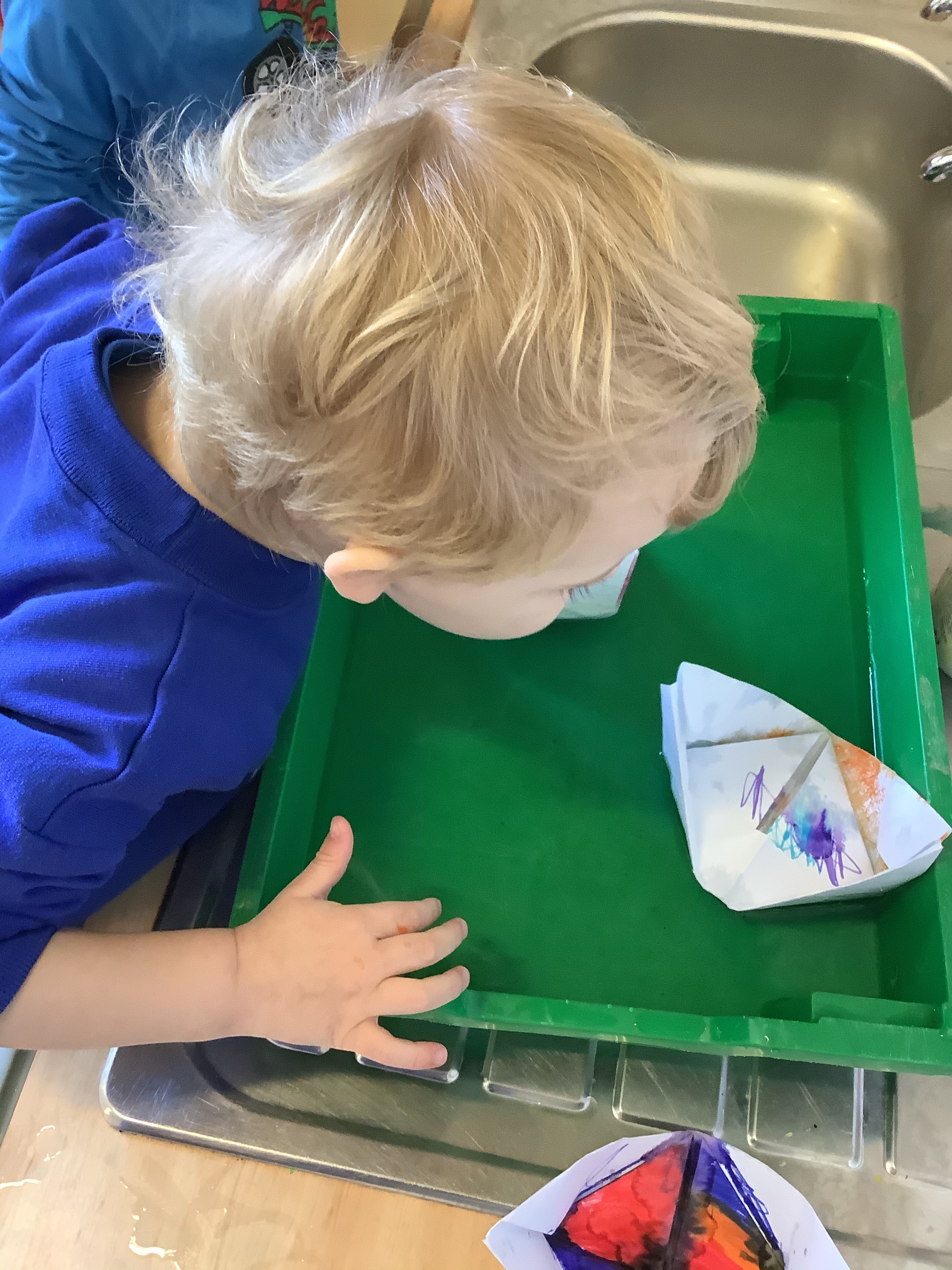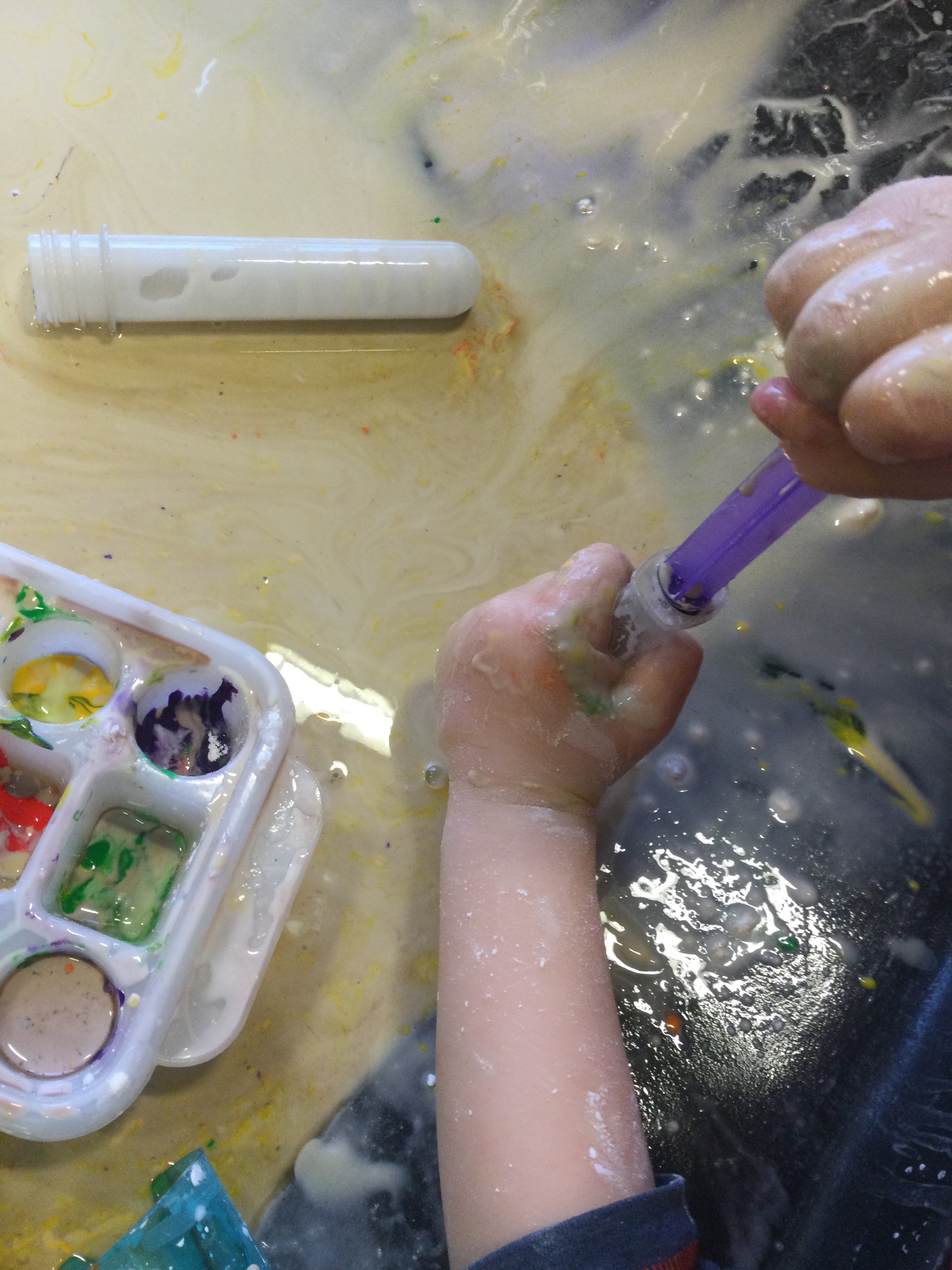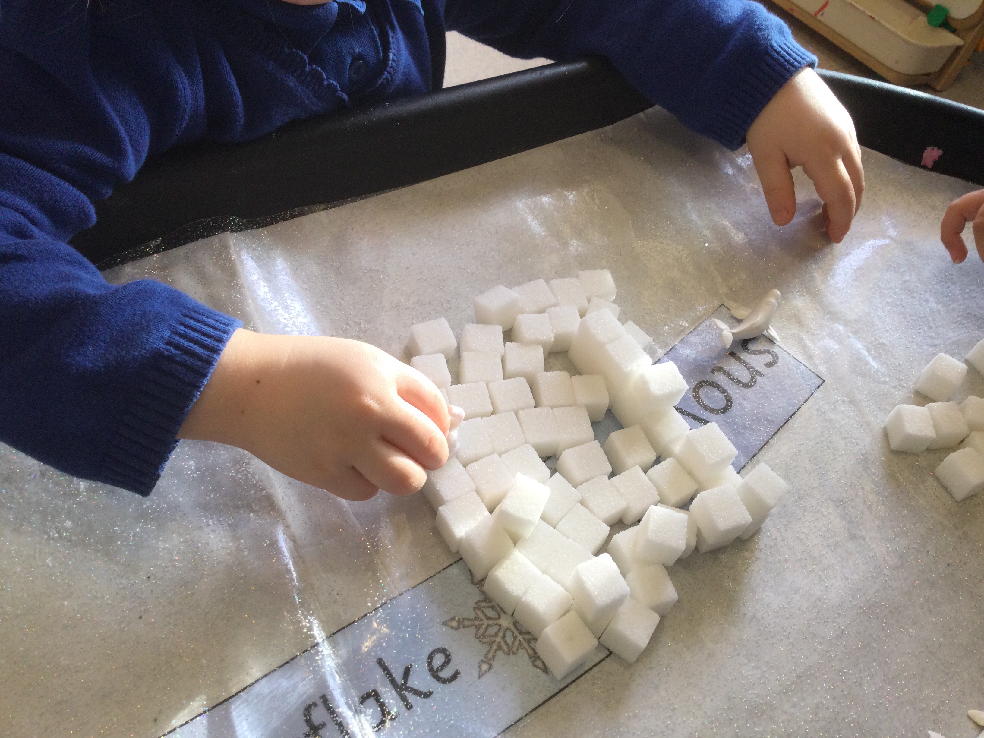 The children love to sing “we’re going on a bear hunt” and in orange room the children used random items that they pretended were binoculars to look out of the windows for bears. Following on from this, we made our own binoculars. We extended this activity even further by going into the garden using the bug hunt resources to search for living creatures (luckily no bears were found). All the while promoting care and concern for living things and our environment.