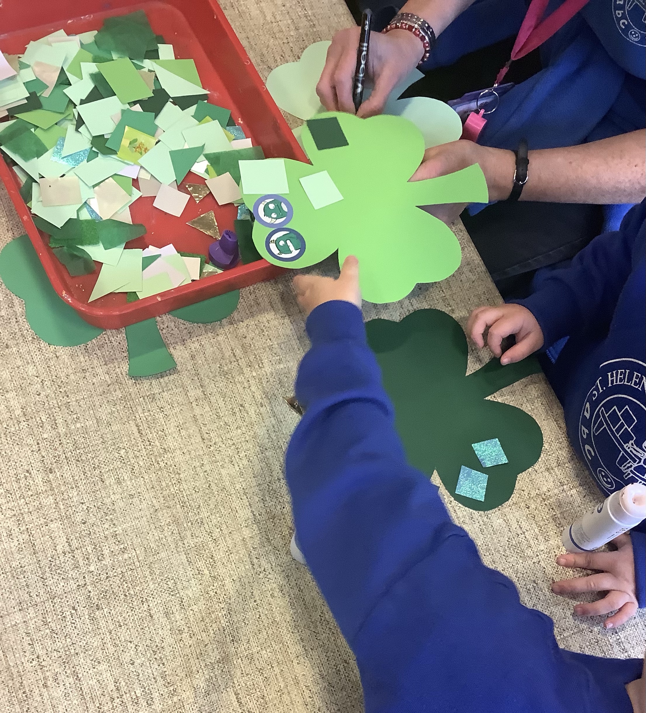 Celebrating St Patrick’s day, the children decorated four leaf clovers, danced to Irish music, we added rainbows, pots of gold and leprechauns to our rooms to enhance to encourage new conversations incorporating Understanding the world.
